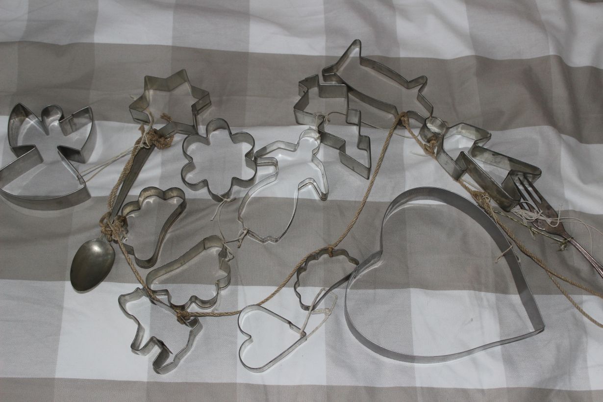 Nämä vanhat metalliset piparkakkumuotit ovat kertyneet minulle eri paikoista, kirppareilta, vanhojen tavaroiden liikkeistä ym. Muotit roikkuvat ikkunan pielessä yhdessä narussa ja ovat osa keittiöni sisustusta.