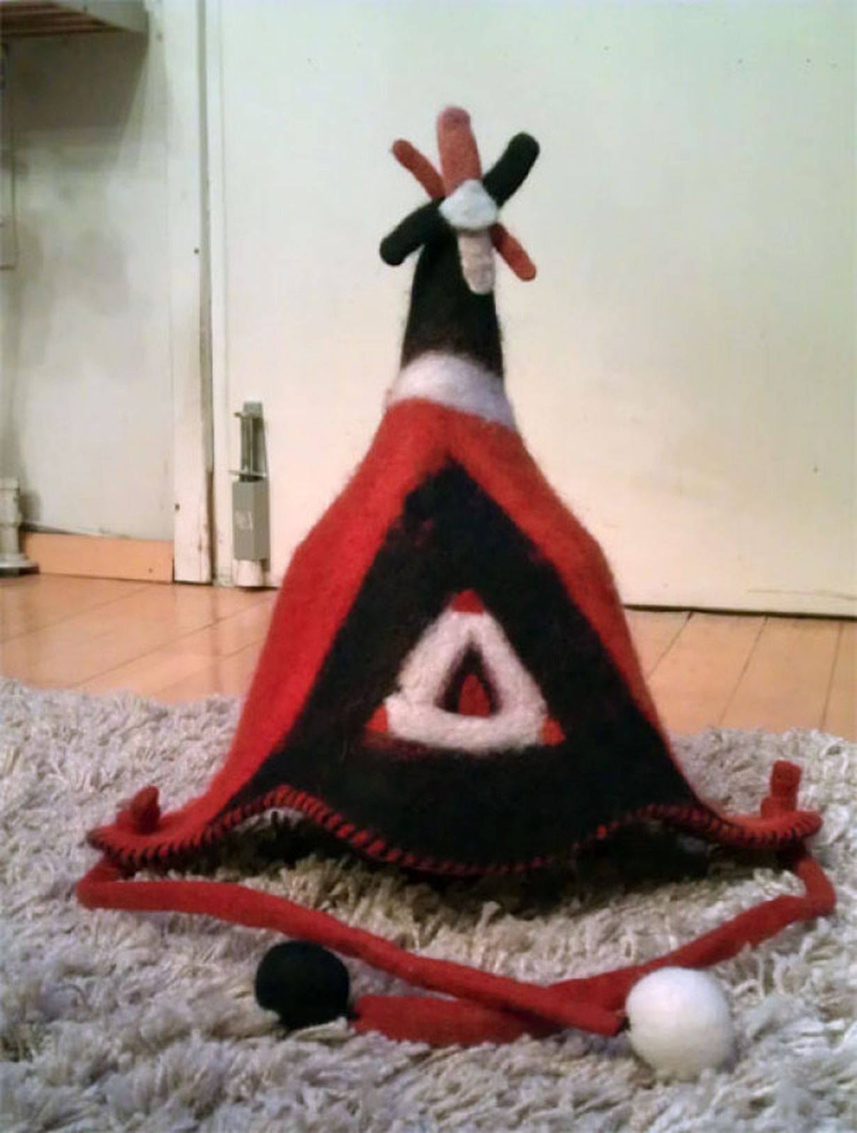 Tämä löytyi Tallinnasta joulutorilta pari vuotta sitten. En itse ole pipoihmisiä, mutta mieheni pitää tätä mielellään pakkasilla. On lämmin ja hauskakin vielä.