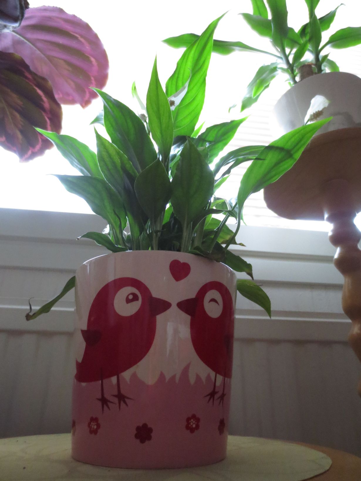 Tämän hauskannäköisen ruukun ostin Tuurin kyläkaupasta muutamalla eurolla pari vuotta sitten. Nyt kun ostin uuden viirivehkan, niin kaivoin ruukun esille kaapin perukoilta ja näyttääkin mukavan pirteältä olohuoneessa :)