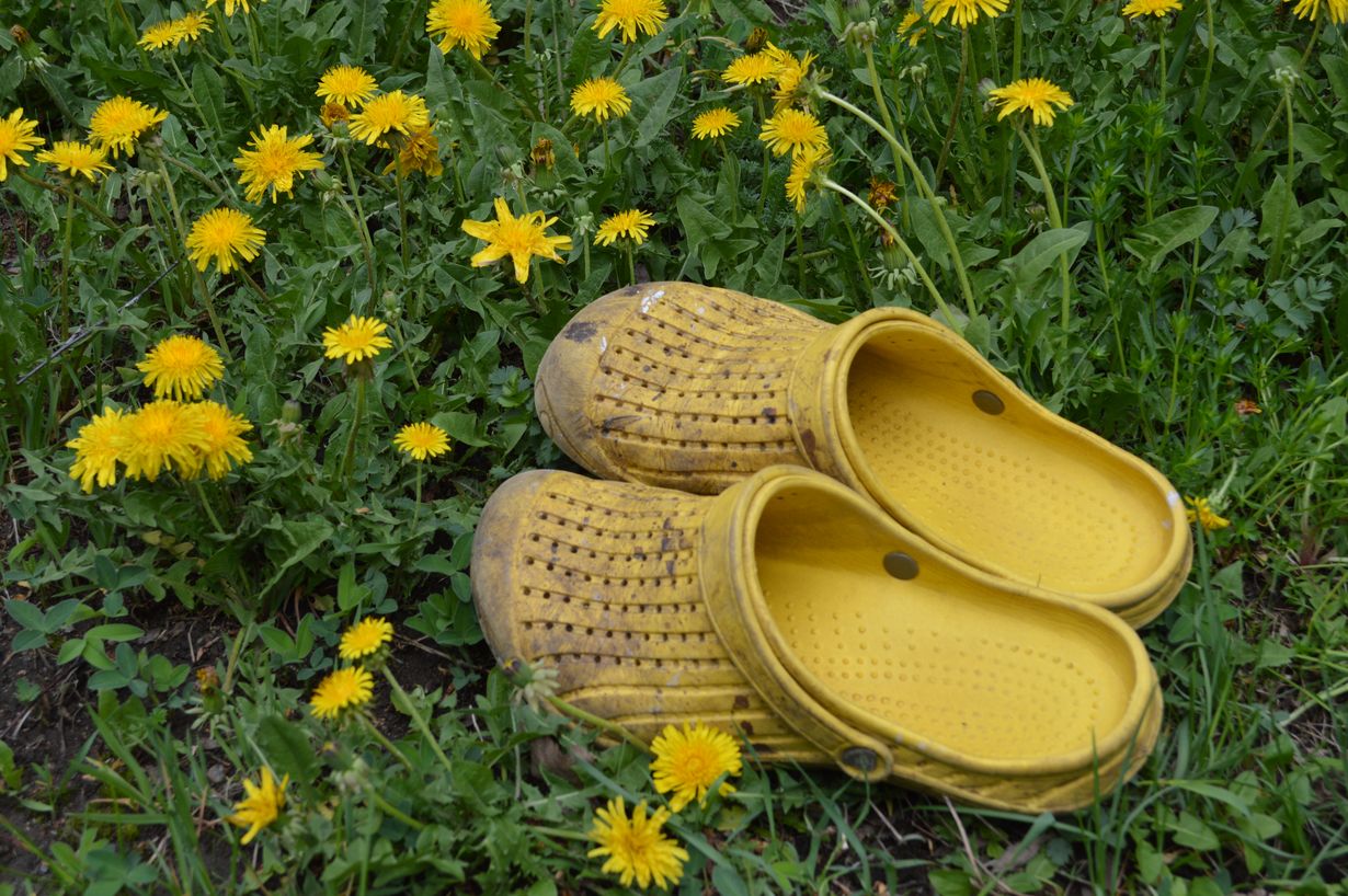 Mummonmökkimme sijaitsee Uudessakaupungissa meren rannalla. Koska mökillä on aina jotain remontoitavaa ja muuta puuhaa, myös parin kesän työt näkyvät kengissä hyvin; löytyy valkoista maalia puutarhakeinun kunnostamisesta, ruskeat jäljet terassin öljyämisestä ja multaa mansikkamaan hoidosta.