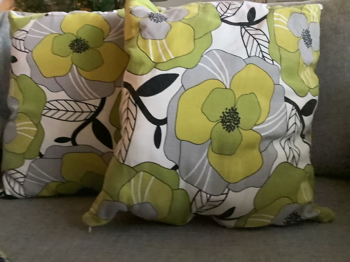 Nämä sohvatyynyt tulivat vastaan Tornion markkinoilla muutama vuosi sitten. Ihastuin heti niiden aurinkoiseen keltaiseen värimaailmaan.