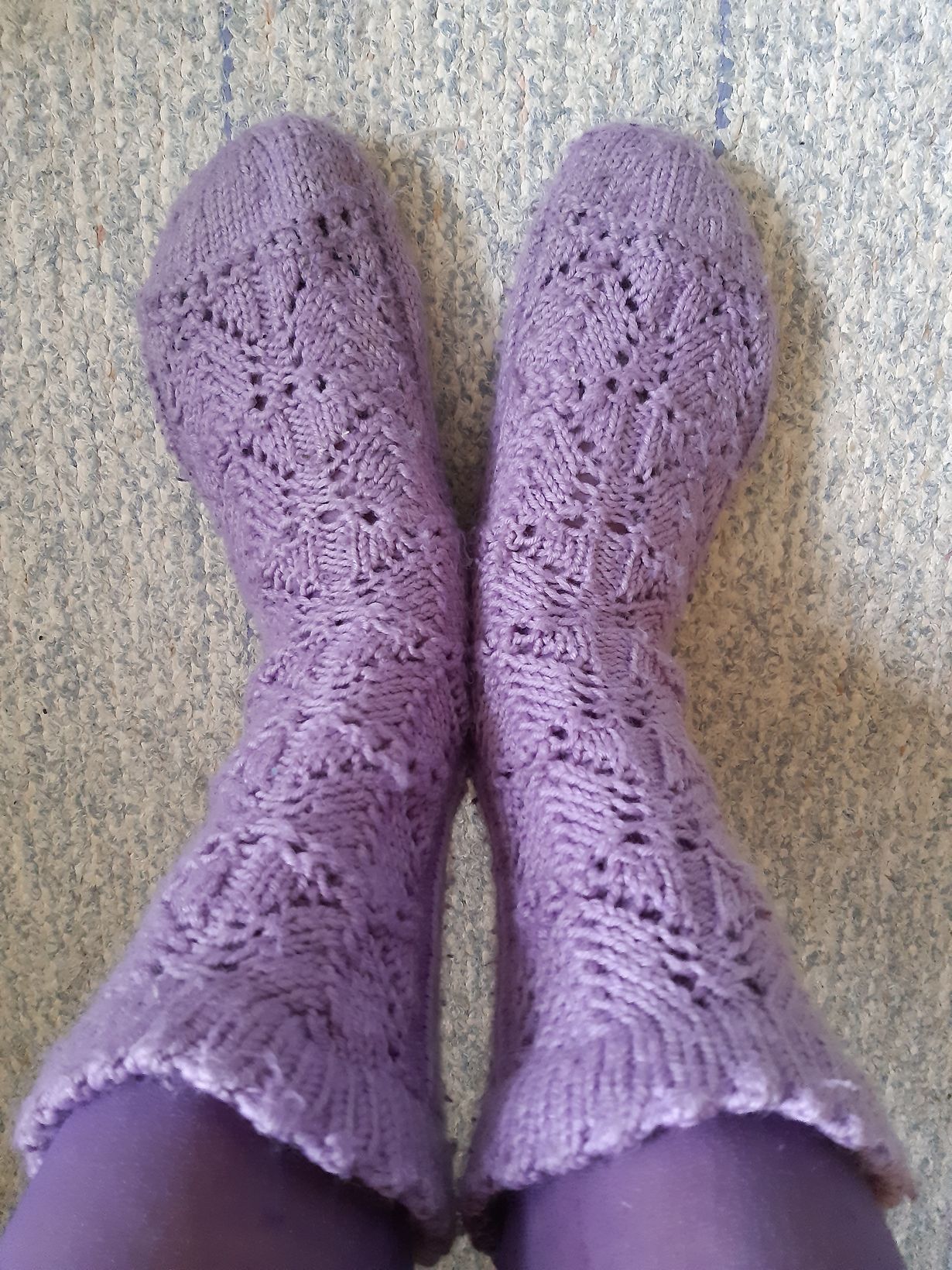 Olen kausittainen neuloja. Nämä unelmasukat tein itselleni Sydämellisen sukkakirjan ohjeella. Pidän sukkia kotona ja kyläillessä. Saapassukat ovat erikseen.