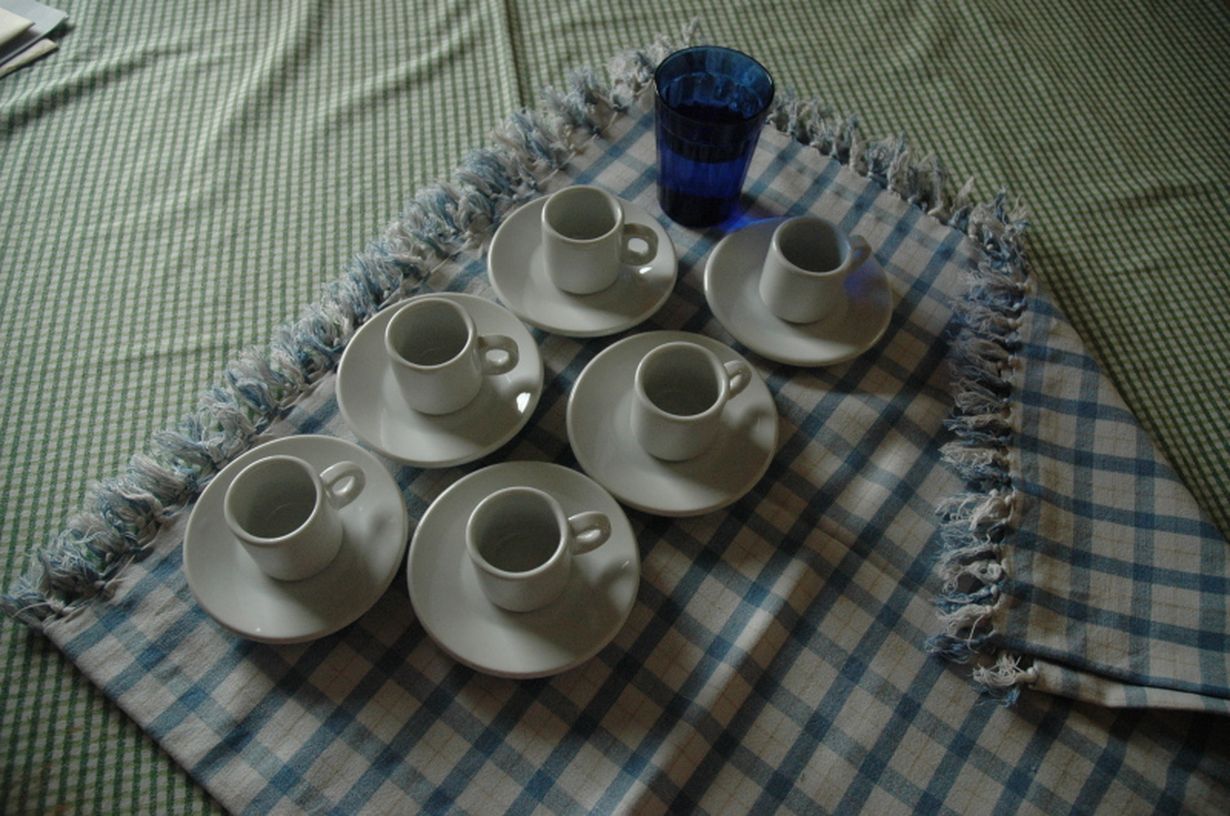 Pieniä kreikkalaisia kahvikuppeja: kannoin ne kotiin Ateenasta 25 vuotta sitten rinkassa. Ja kaksi pakettia kreikkalaista kahvia. Pienen astia- ja kodintarvikepuodin myyjä kysyi onko sinulla kahvia myös. Kyllä on. Osaatko keittä kahvia niin kuin me Kreikassa teemme! Osaan. No näytä! Hän avasi komeron oven, jonka takana oli pieni kaasulevy, brika (kahvinkeittokannu), kahvia, sokeria ja lusikoita ja kuppeja.
