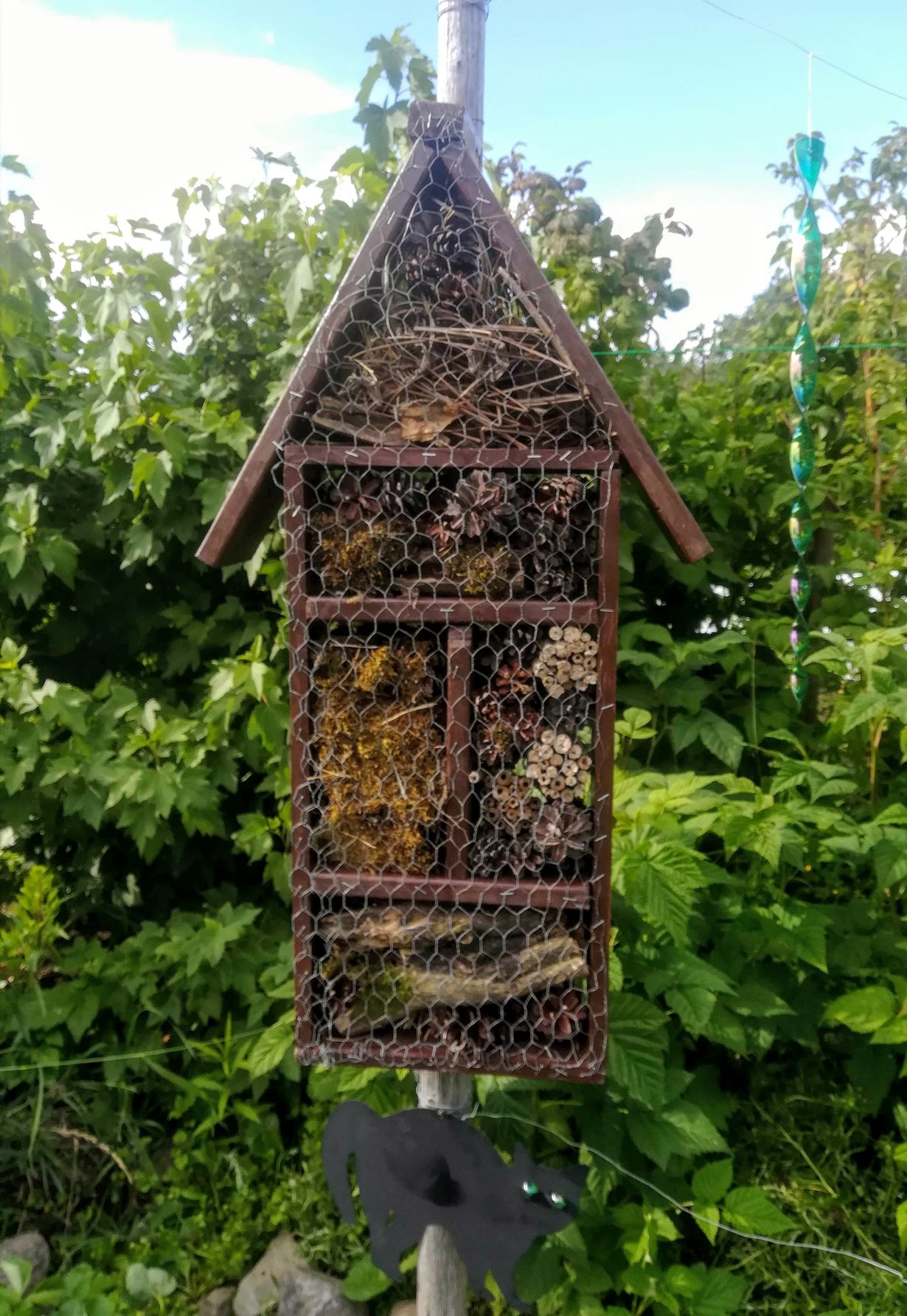 Oma tekemä ötökkähotelli pörriäisten iloksi,uonnonmateriaaleja hyödyntäen.