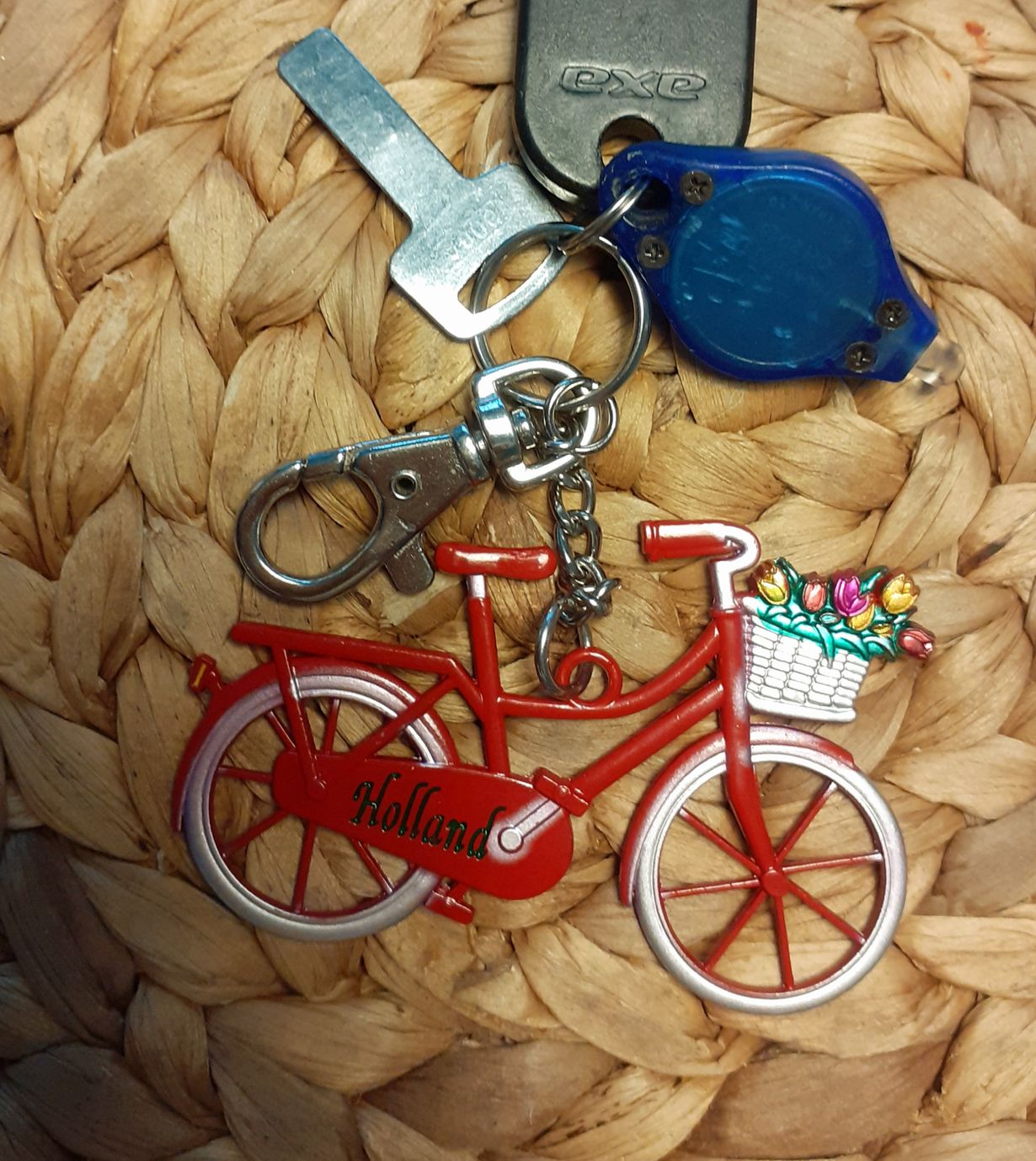 Mukava muisto muutaman vuoden takaisesta keväisestä Amsterdamin matkasta siivittää pyöräreissuja kotimaan kaduilla avainrenkaassa keikkuen.