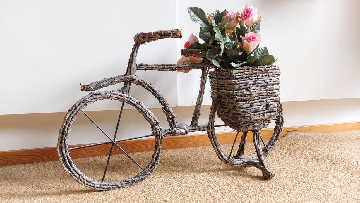 Ostin tämän pyörän itselleni 50-vuotis syntymäpäivänäni.Ihastuin siihen välittömästi ,kun näin sen kukkakaupassa.Kissanikin pitää siitä,se tykkää järsiä sen sarvia.