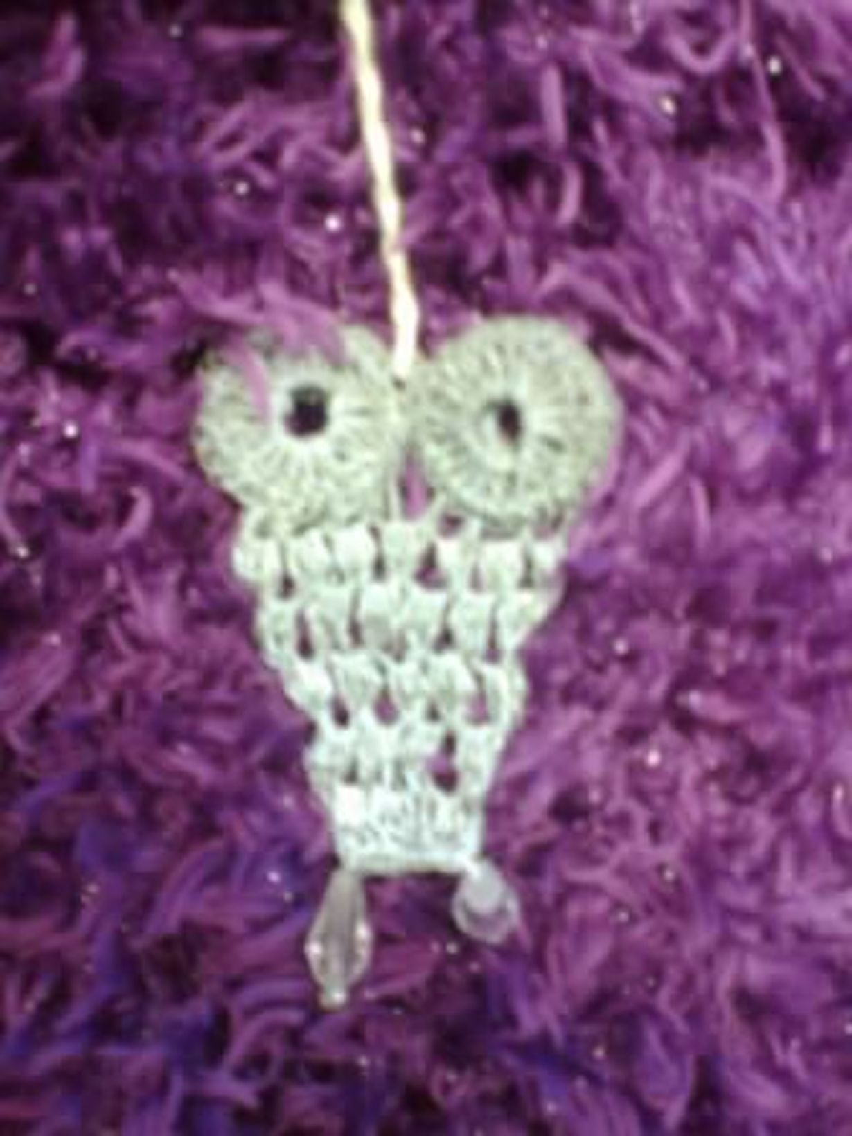 Ihastuin heti, kun löysin tämän pöllöheijastimen ohjeen ja ajattelin, että se pitää tehdä itselle. Niinpä ostin heijastinlankaa ja virkkasin sen siitä.