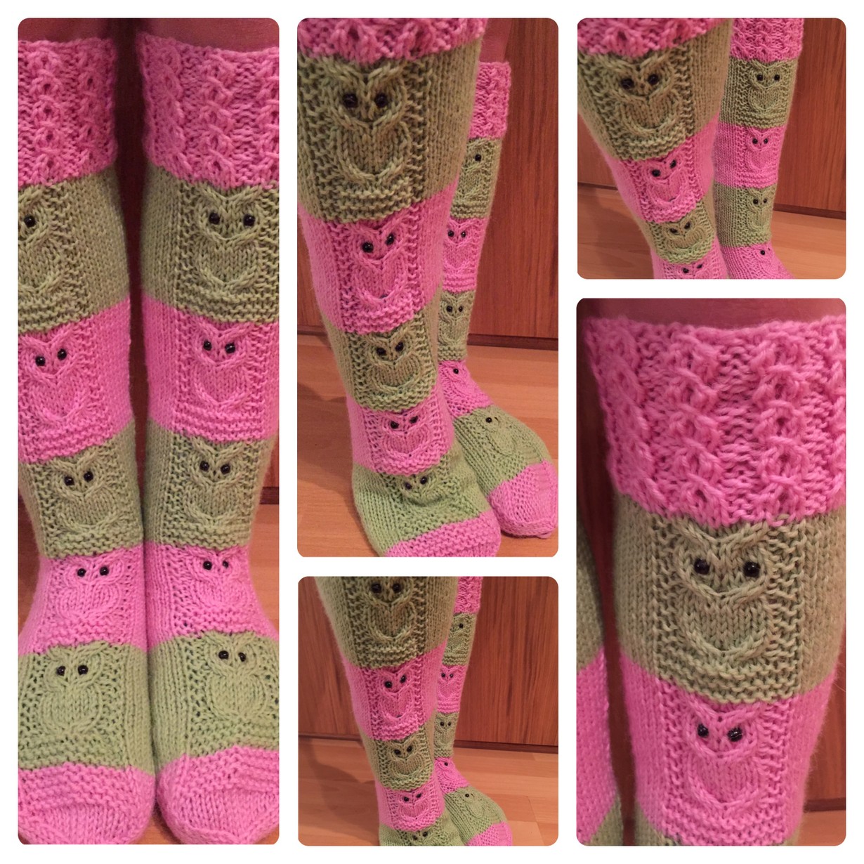 Olen hurahtanut tekemään pöllösukkia, joiden silminä ovat puuhelmet. Ensimmäiset pöllösukat tein pari vuotta sitten, mutta buumille ei näytä tulevan loppua.