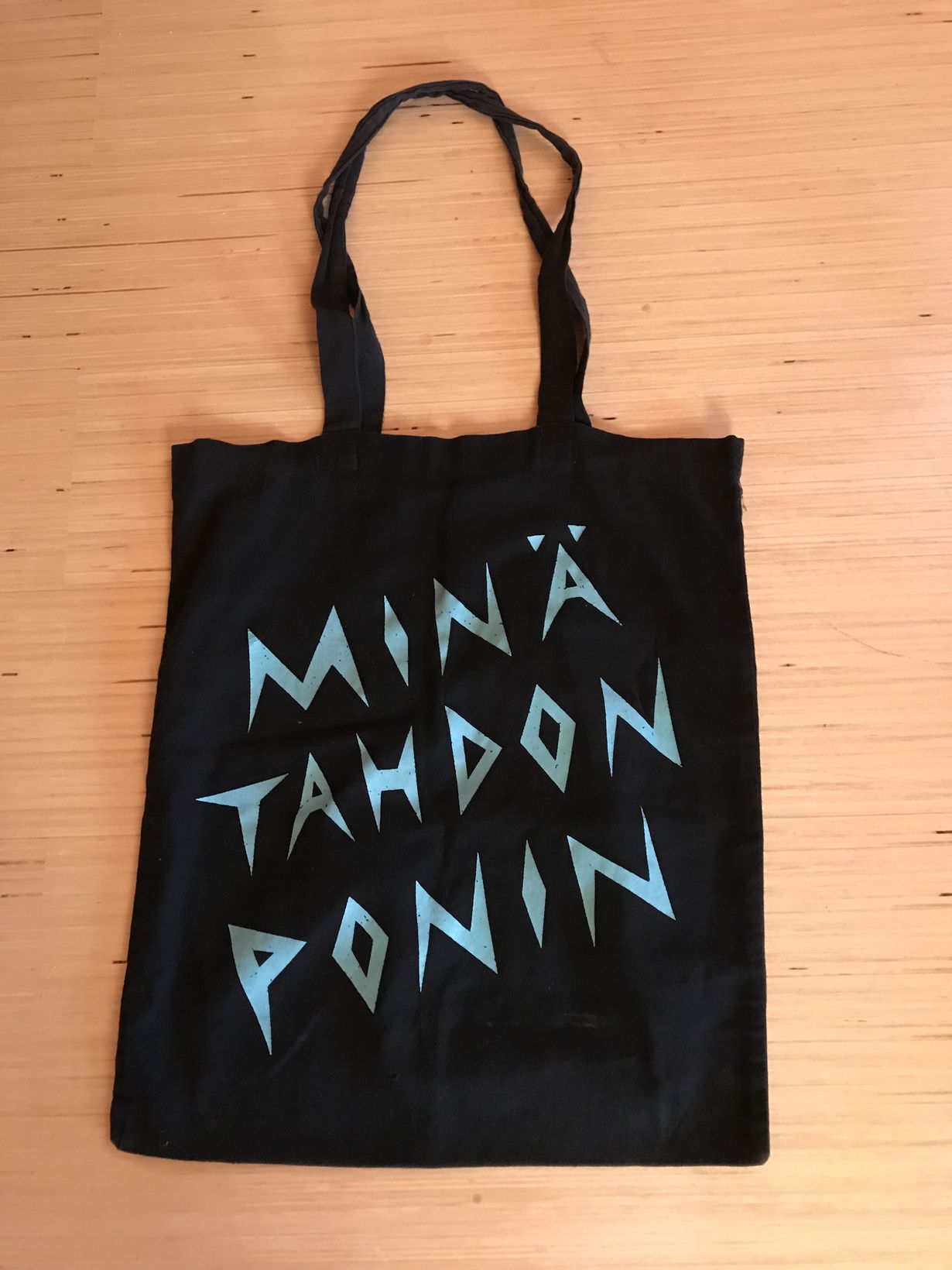 Lempi yhtyeeni Olavi Uusivirran keikalta ostettu ”Minä tahdon ponin” kassi on kiva kauppakassina. :)