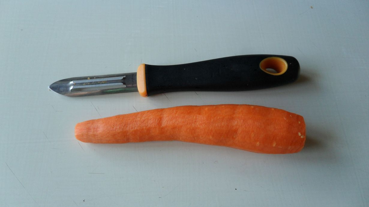 Kuorimaveitsi on päivittäin käytössä; ainakin 2 porkkanaa sillä kuoritaan joka päivä. Perunat, omenat, juurekset... kätevä apulainen!