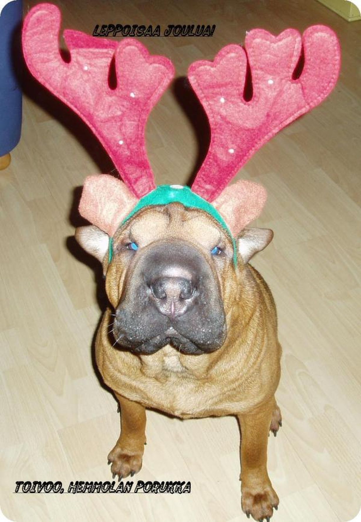 Edesmennyt ensimmäinen oma ja todella rakas koirani Hemmo joka lähti koirien taivaaseen joulun alla 4v sitten. Tässä vilkkuvat ja soivat poronsarvet päässä ja ilme sen mukainen!