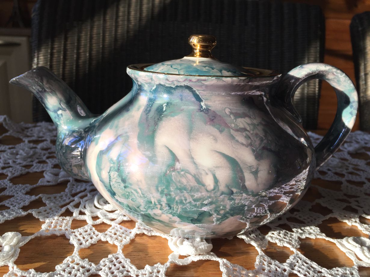 Tätä Arabian Kirjo teekannua olen ihaillut yli 50 vuotta! Ensin se oli katseeni alla lapsuudenkotini hyllyssä, sitten isäni kuoltua ja äitini muuttaessa pienempään asuntoon, sain sen oman olohuoneeni rakkaaksi koristeeksi. Olen kasvanut pikkutytöstä mummiksi sen muotoa ihaillen.