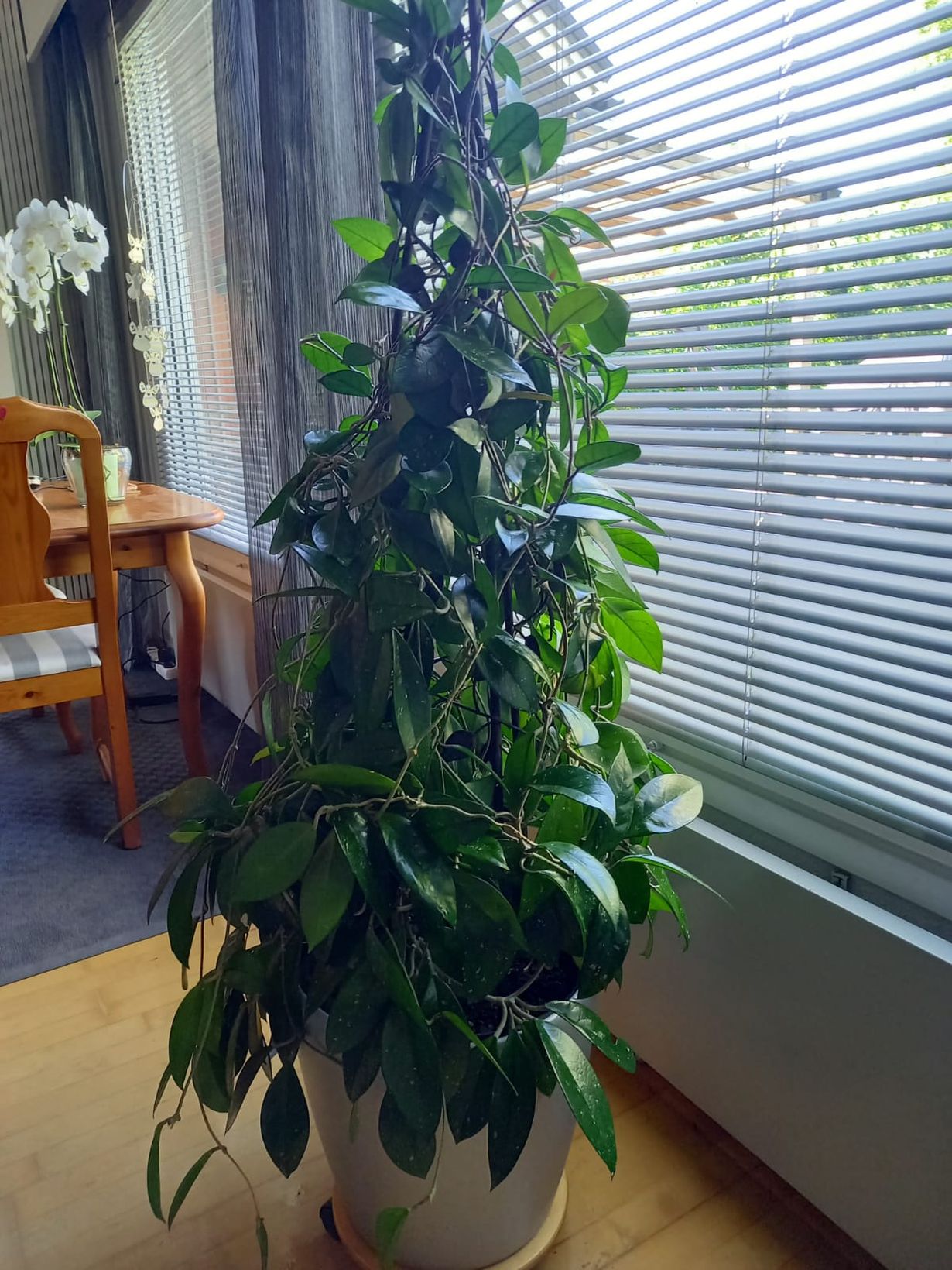 Olen saanut tämän posliinikukan oksapistokkaan v. 1980 Valma mummiltani (1904-1996), joka oli innokas kukkivien kukkien kasvattaja. Hänen hoivissaan kukoistivat posliinikukan lisäksi kiinanruurut, soilikit, pelargonit yms. Olen jakanut tästä posliinikukasta pistokkaita monille tutuilleni ja sukulaisille. Se kukkiin runsaasti tuoksuvin kukin alkukesästä.