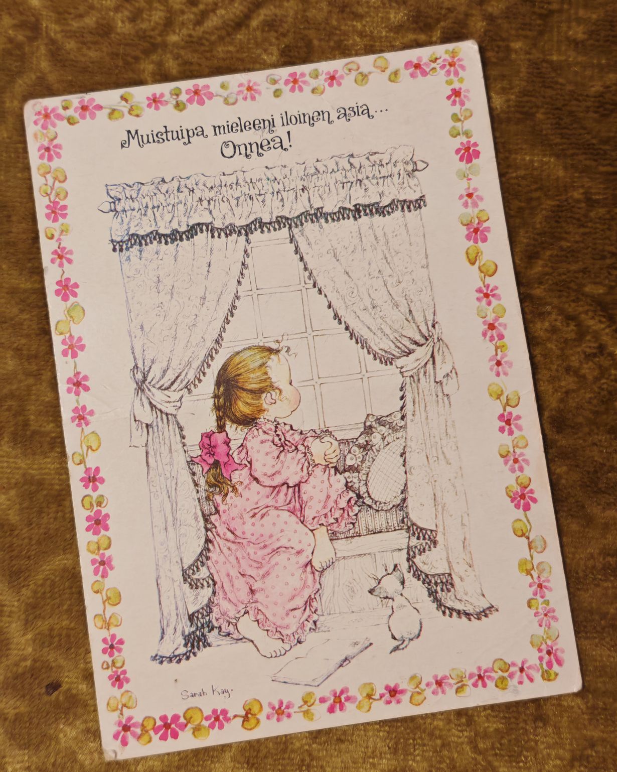 Isoveljeni lähetti minulle tämän kortin nimipäiväni johdosta helmikuussa vuonna 1980. Veljeni oli tuolloin armeijassa Lappeenrannassa ja 20-vuotias. Itse olin 17-vuotias lukiolainen ja asuin äitini kanssa Mikkelissä. Veljeni oli minulle huippu tärkeä ja on yhä. Hän kuoli keuhkosyöpään vuonna 2005 ja kortti on muuttunut minulle päivä päivältä sen jälkeen tärkeämmäksi.