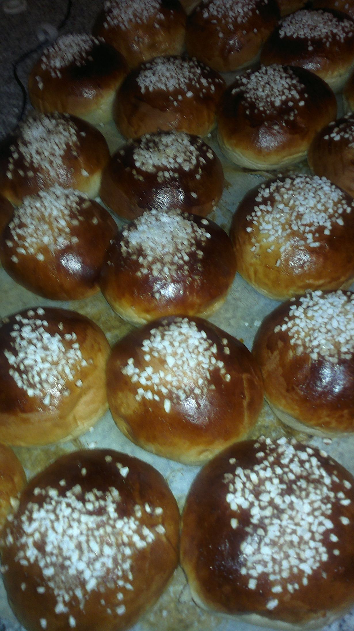 Leivon pullat sunnutai-iltana 27.1.2013. Alustin taikinan käsin, koska silloin saa parhaimman tuntuman taikinaan, eikä siitä tulee liian jämäkkää. Käytin litran maitoa nesteeksi ja pullia tuli 35 kappaletta. Ovat reilun kokoisia ja niistä tulee aivan mahtavia laskaispullia, jos säilyvät laskiaiseen saakka....