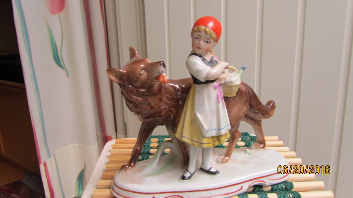 Kuvaa antiikkiesineesi! Voit voittaa Nespresso-kahvikoneen Punahilkka ja susi lilli 20.6.2016 klo 16:44 Vuosisatoja vanha satu on aiheena tässä pikku patsaassa, jonka kymmeniä vuosia sitten ostin kirpputorilta.
