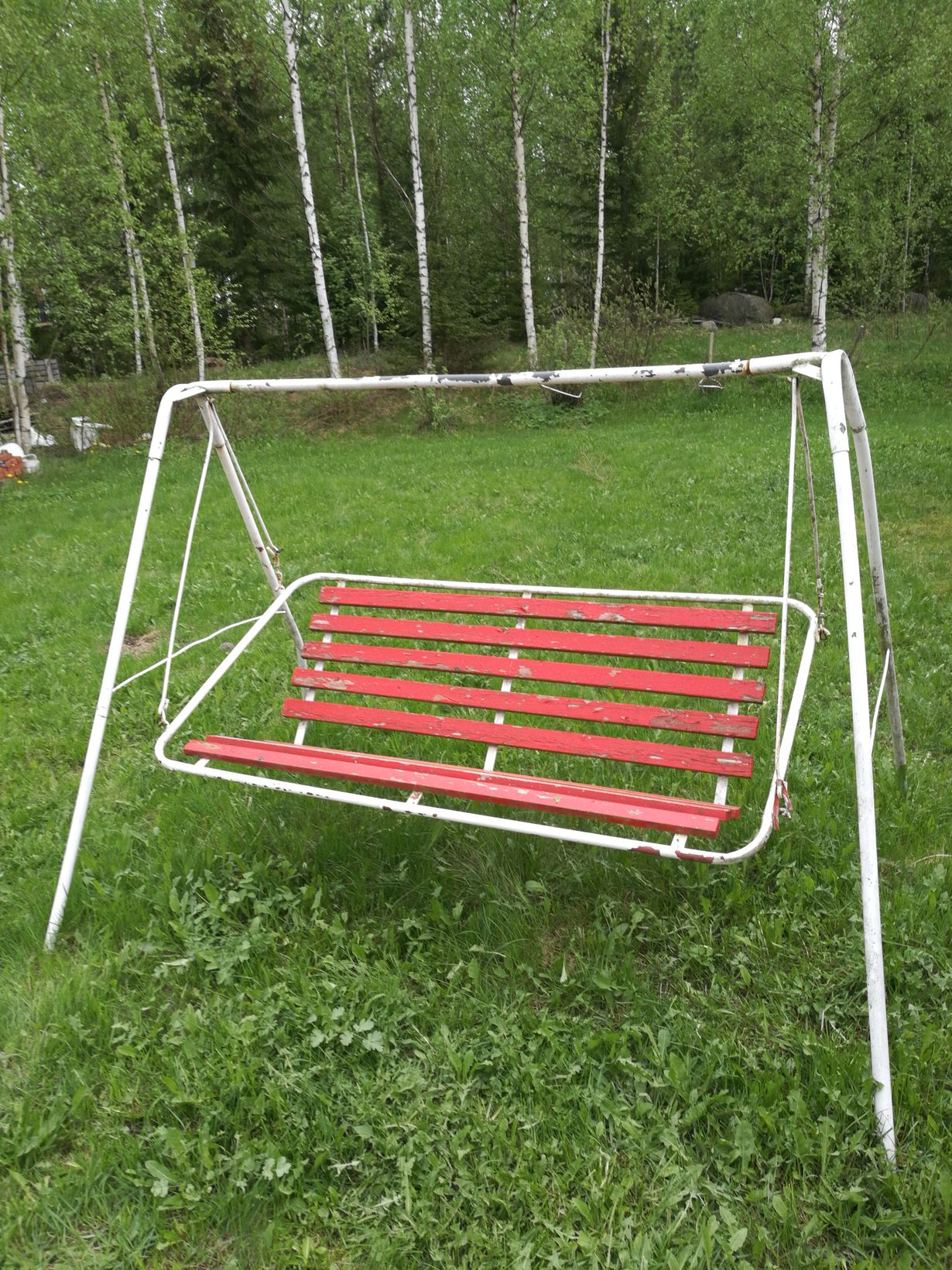 Lähetä kuvakisaan kuva pihakeinustasi – voit voittaa Arabian Huvila -astioita! Punainen keinu Piia 23.5.2021 klo 17:18