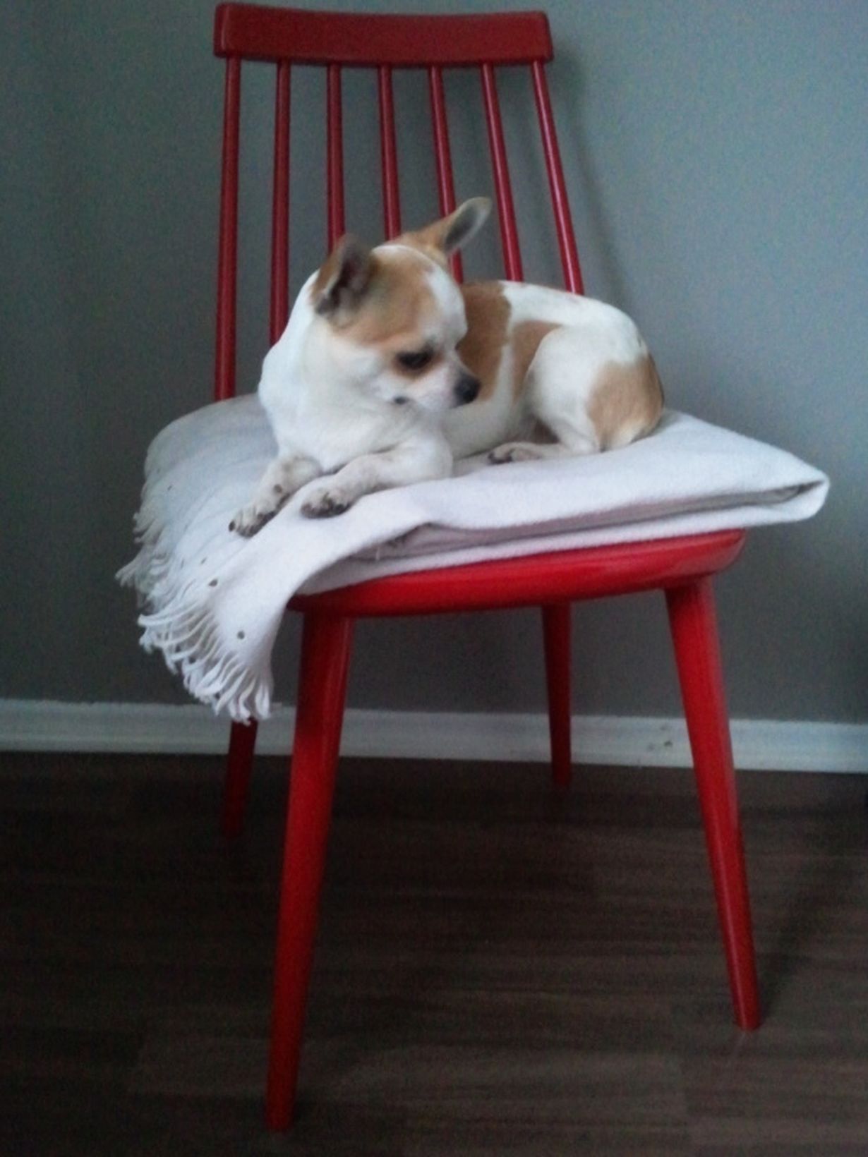 Punaisia retrotuoleja meiltä löytyy kaksi ja löysin ne muutettuani ensimmäiseen "omaan kotiini". Toinen löytyi parvekkeelta ja toinen varastosta. Aluksi en lämmennyt tuoleille, vaan toinen niistä päätyi kukkaruukun alle ja toinen äidilleni. Vasta muutettuamme uuteen asuntoon, tajusin kuinka hienot tuolit ne oikeastaan onkaan ja kuinka hyvin ne sopivat valkoisen ruokapöydän ääreen. Nyt samanlaisia tuoleja löytyy meiltä myös valkoisina.