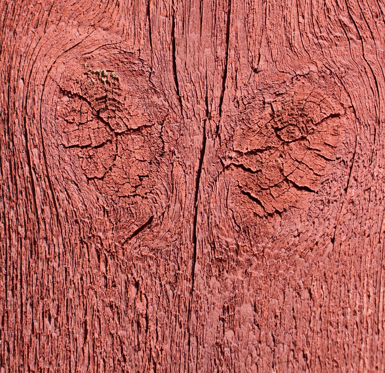 Punamaalisydän puukirkon seinässä