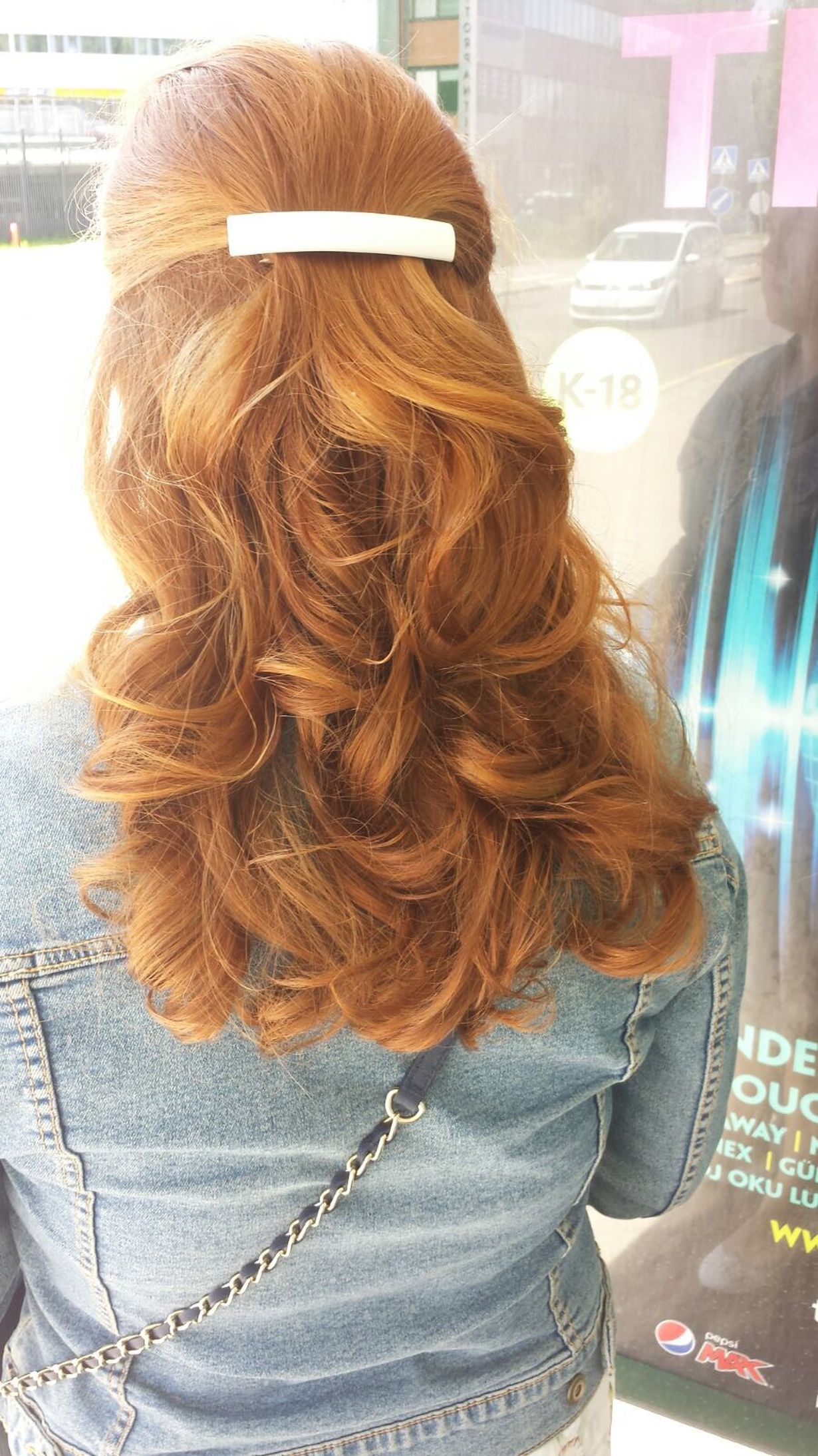 Tyttäreni oli menossa juhliin ja halusi kerrankin kokeilla kiharakampausta pitkiin, melko runsaisiin hiuksiinsa. Onneksi mummilla on taito hyppysissä ja vaikka aikaa se vei, niin lopputulos oli kyllä upea.