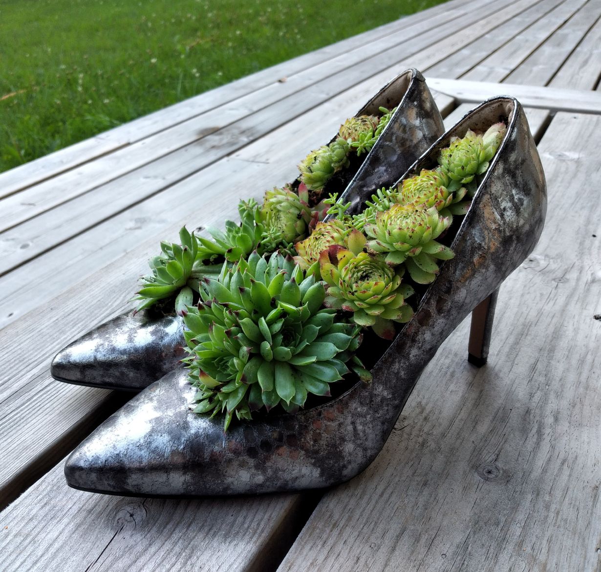 Epämukavat korkkarit saivat paremman elämän mehikasvien kotina puutarhan jatkeena terassilla ja toimivat myös koristeena häissämme 240721.