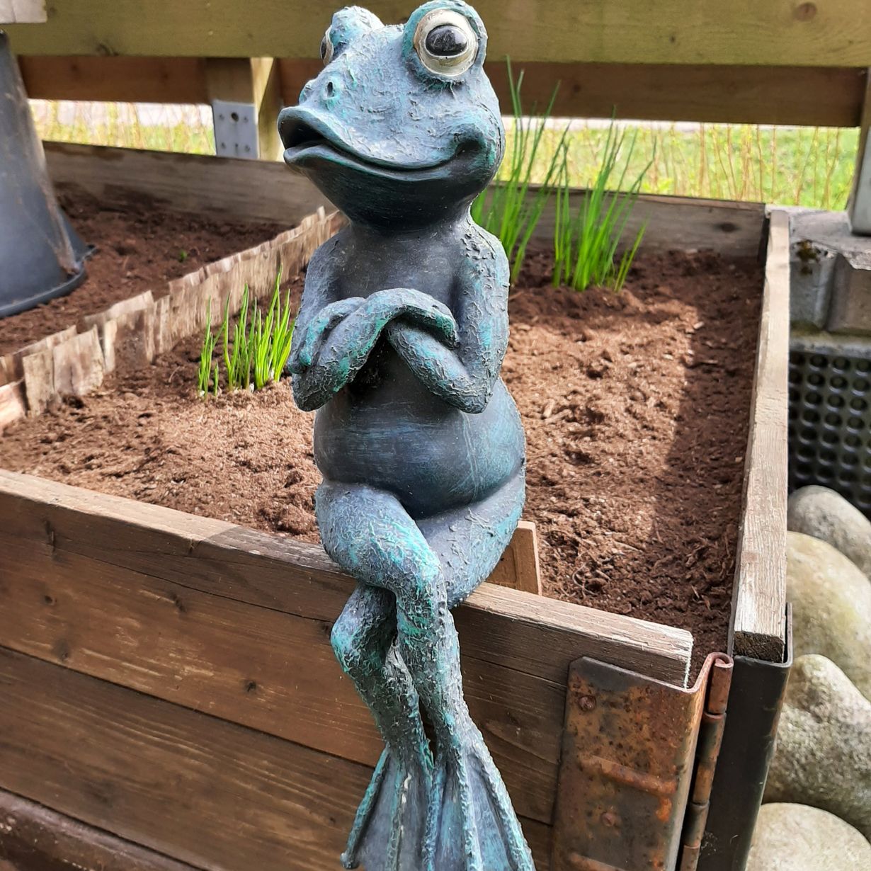 Tämä kaino sammokkoneiti tarttui mukaani noin 10 vuotta sitten Porvoosta. Siitä asti se on vahtinut kesäisin erilaisia istutuksiani, tässä kuvassa ruohosipulia