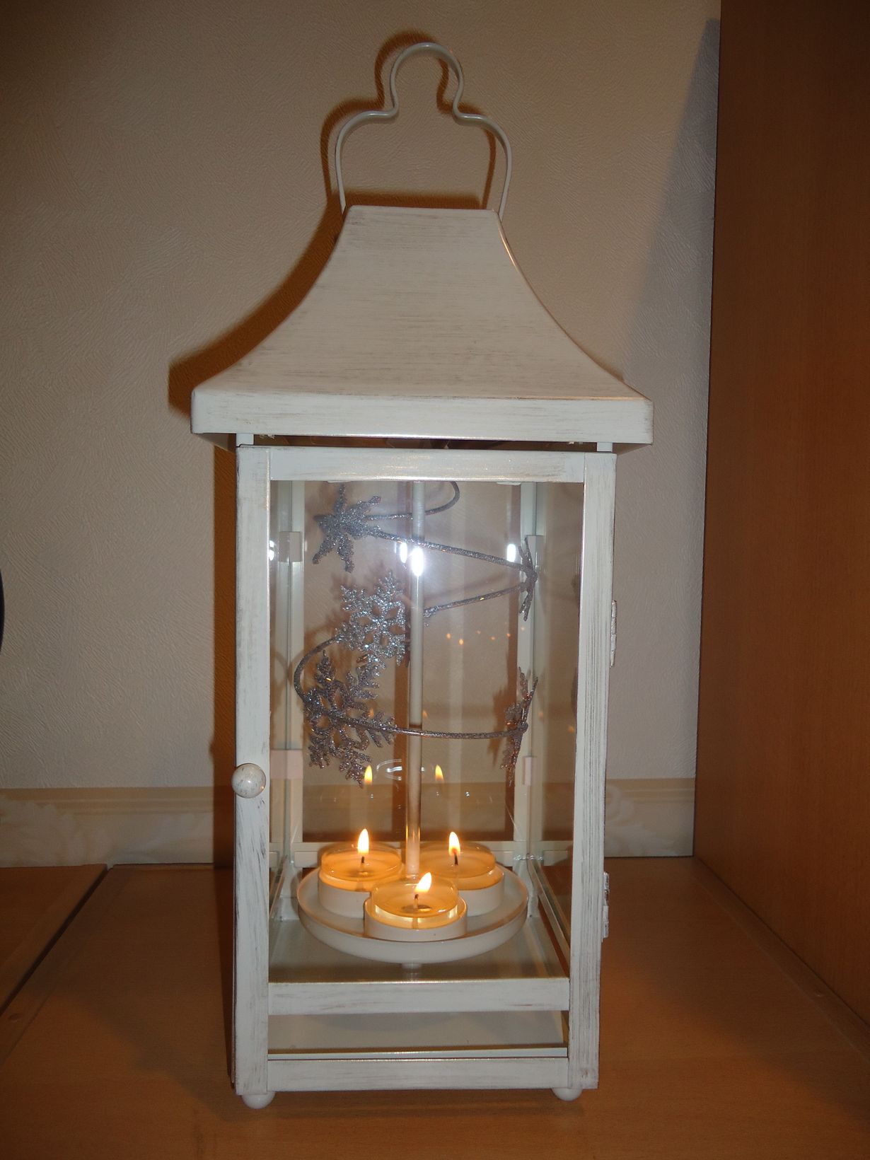 Partyliten vaihtuvat vuodenajat lyhty on minun suosikkilyhtyni. Kynttilän lämpö saa koristeen (lumihiutaleet tai linnut) pyörimään. Sitä on ihana katsella. 3
