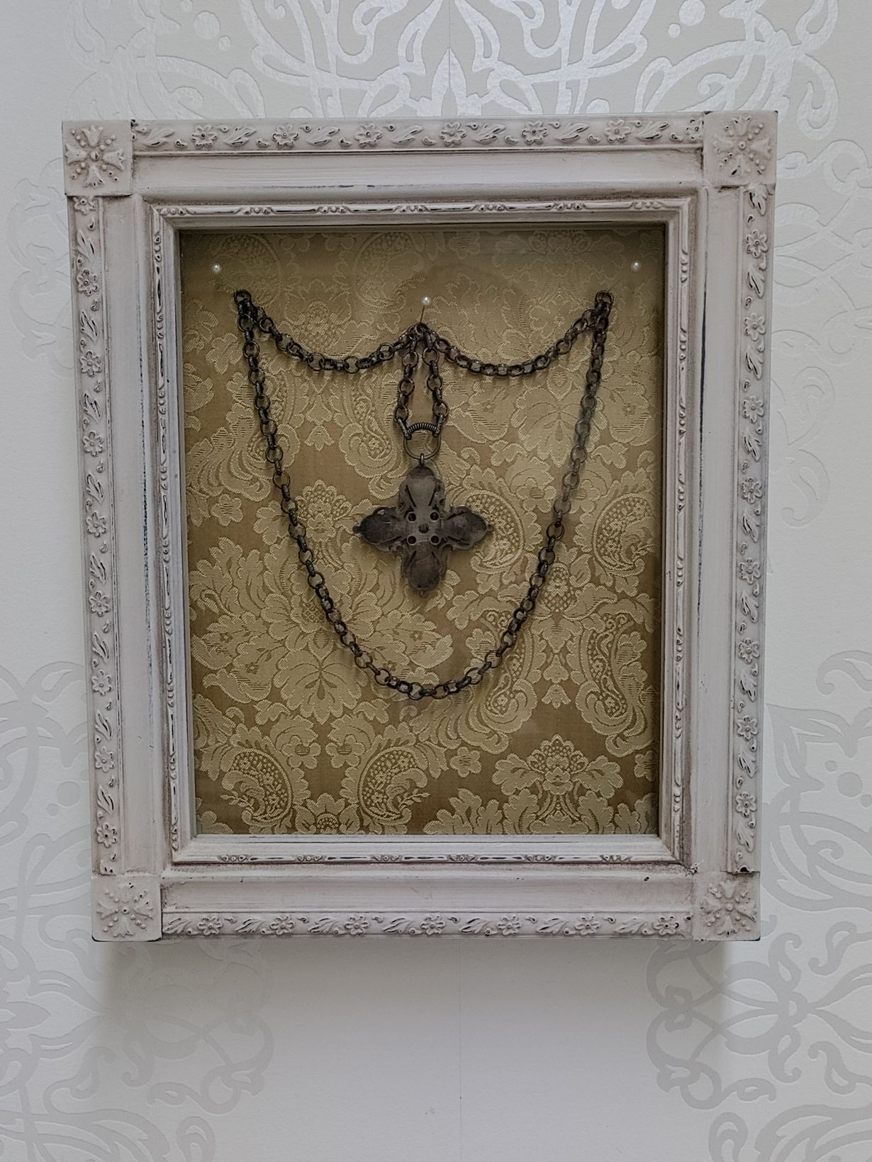 Mieheni peri äitinsä kotitalon, josta remontoimme perheellemme kodin. Koru löytyi remontin yhteydessä. Netistä löytyi tietoa, että koru on Kalevala Korun Räisälän risti.