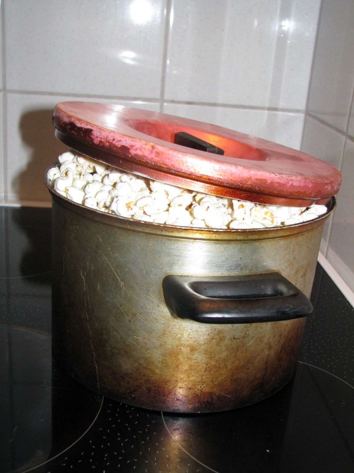 Ulkonäkö on kärsineen näköinen mutta popcornit poksahtelee aina yhtä iloisesti ja maistuvat.