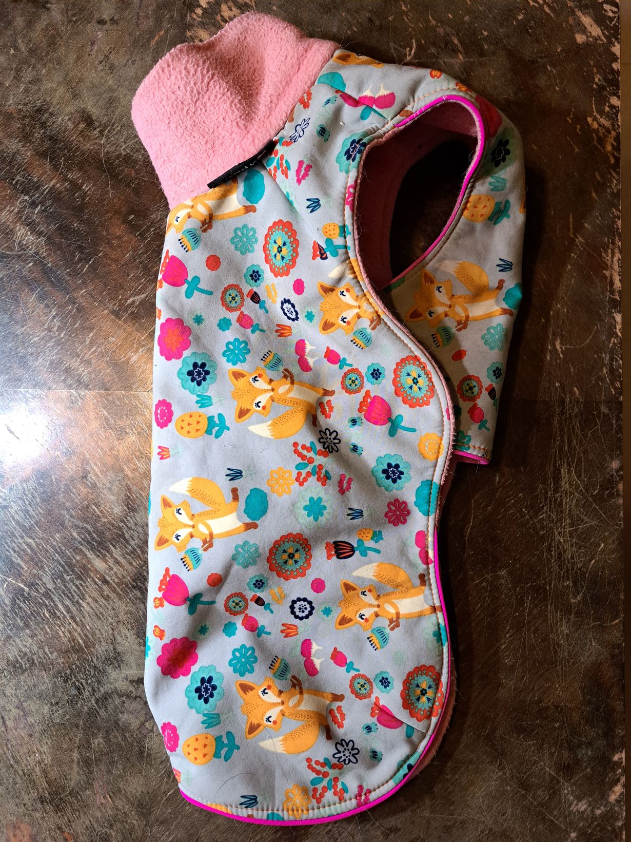 Voiko koiran takin kuosi kauniimpi olla! Kuluneena ja nuhjuisenakin sen ketut ja kukkaset hehkuvat. Takin on tehnyt Helena Paukku.