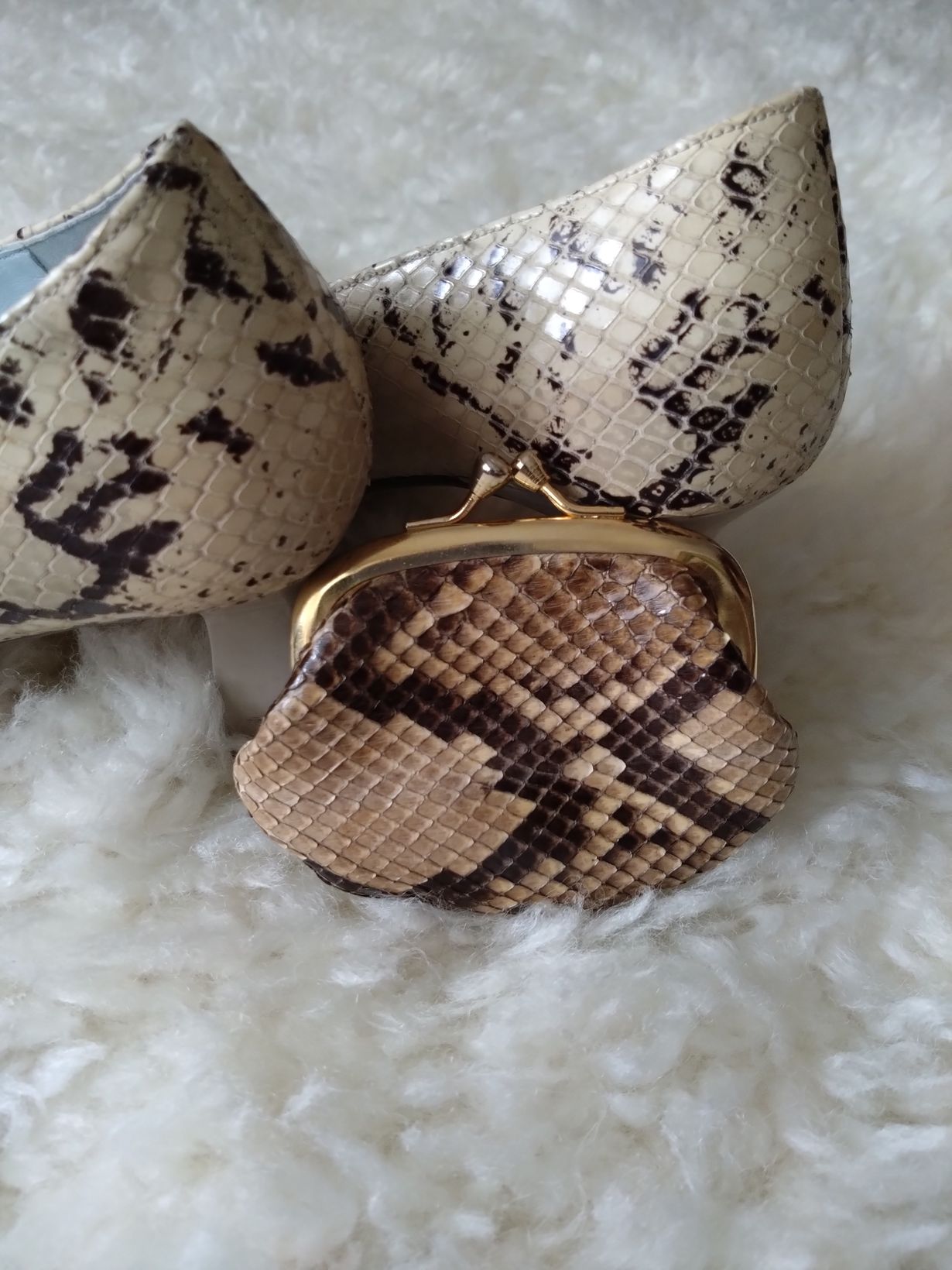 Äitini bongasi tämän kenkiini sopivan kukkaron naapuriltaan, jota piti hieman taivutella myymään kukkaro.