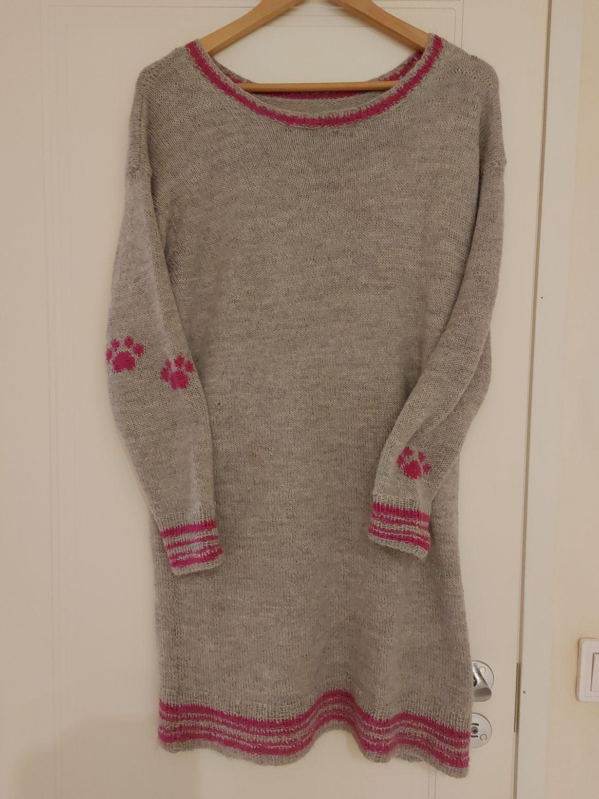 Rakkain villapuseroni on alpakasta neulottu tunika. Olin lankakaupassa töissä ja lankaa tuli ostettua paljon. Kissaihmisenä halusin laittaa tunikaan kissantassut suosikkivärilläni muistuttamaan rakkaasta lemmikistä. Tunikaa on tuuletettu, pesty ja paljon pidetty, suosikkini.