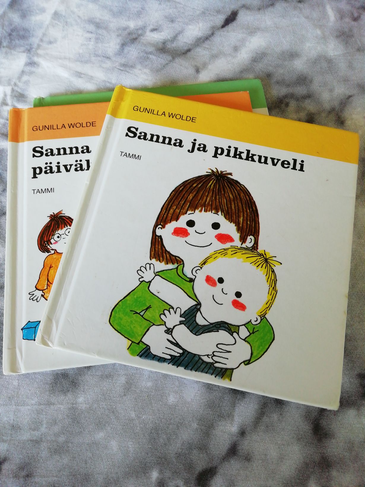 Lapsena minulle luettiin paljon ja opin itse lukemaan 5-vuotiaana. Gunilla Wolden Sanna-kirjat olivat rakkaimpia kirjoja, joita lapsuudestani muistan ja ne luettiin puhki. Kun omat lapseni olivat pieniä, löysin kirjakaupasta Sanna-kirjoja uusintapainoksena. Nyt Sanna pikkuveljineen on päässyt ilostuttamaan jo toista sukupolvea.
