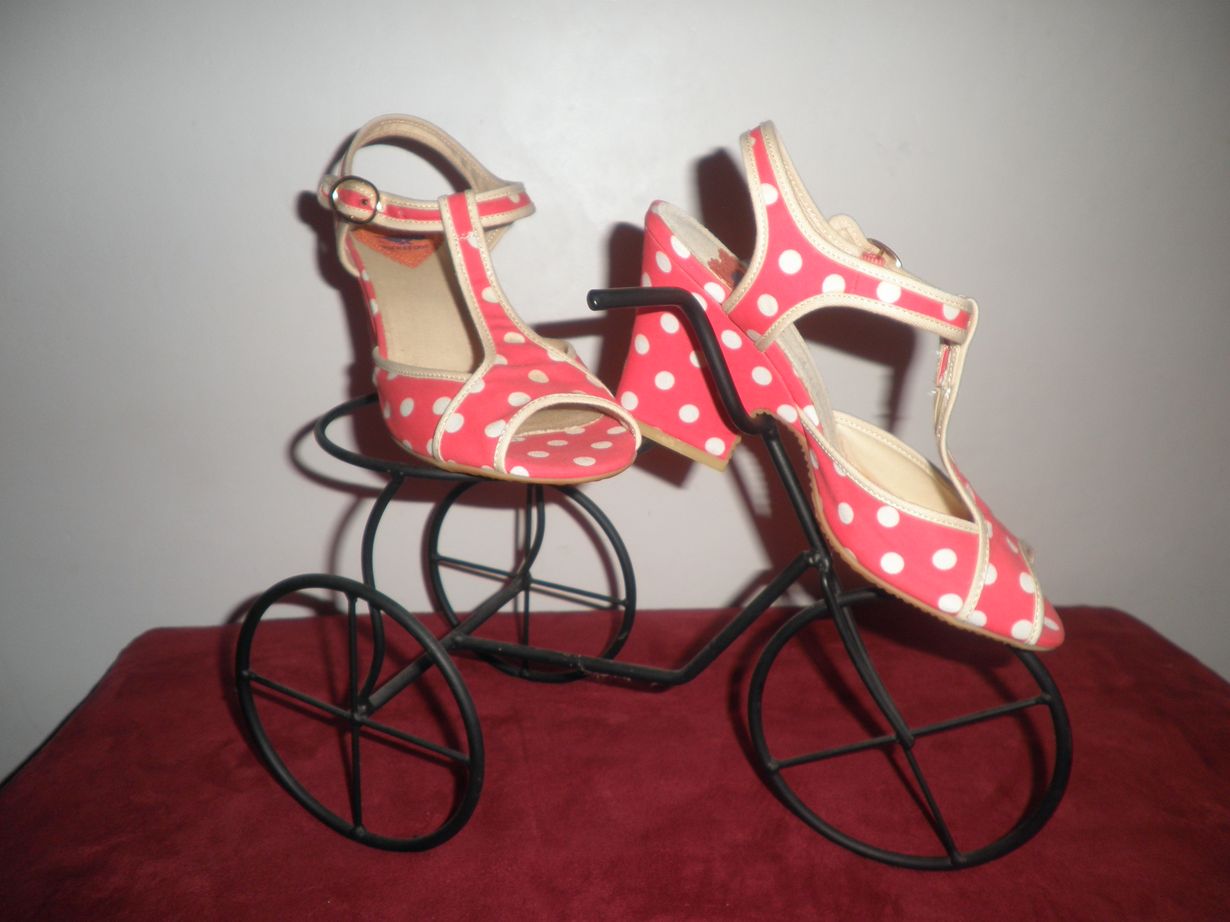Nämä valloittavat korkokengät olen saanut tuliasena tyttäriltäni Espanjan Vigosta muutamia vuosia sitten. Kengät ovat aina ilahduttamassa minua. Kesäisin ne ovat parhaimmat kenkäni - käytännölliset jopa pyöräillessä! Talvisin korkkarit somistavat kotiani polkupyörän kyydissä.