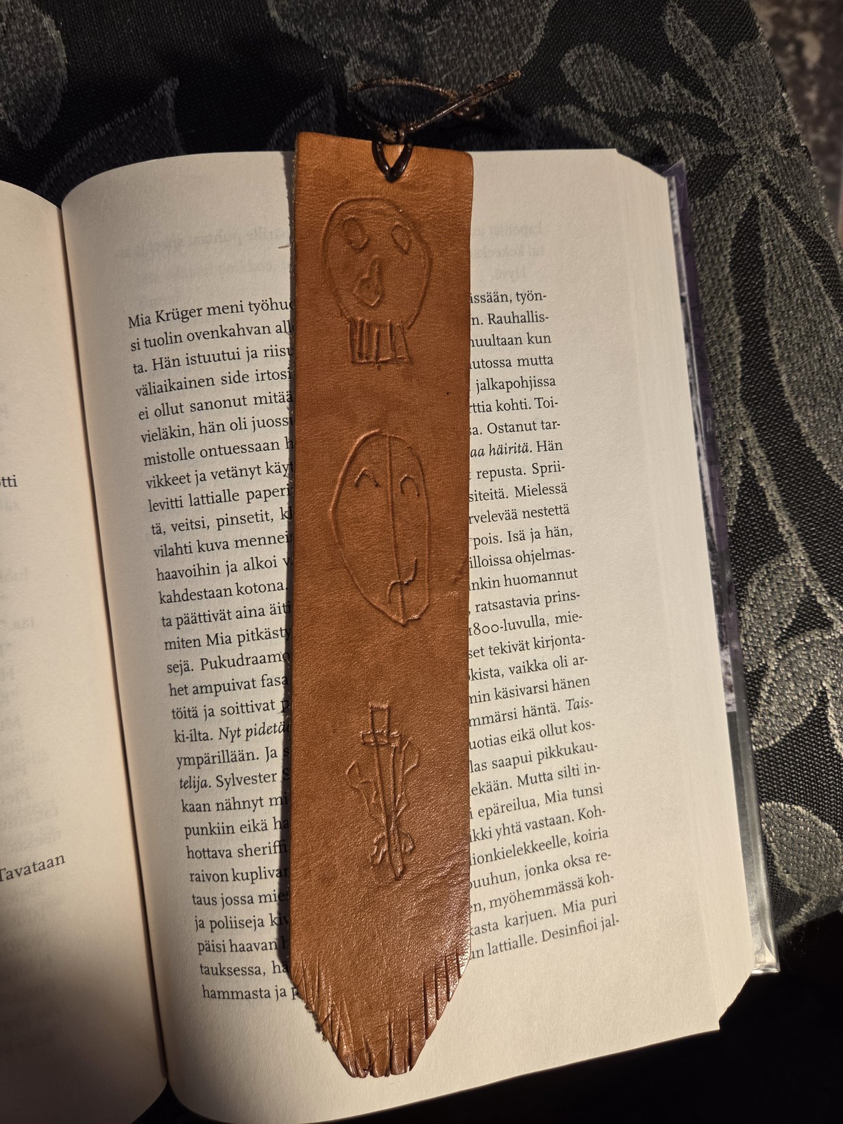 Yhdeksänvuotiaan pojanpoikani tekemä kirjanmerkki ollut käytössä jo yksitoista vuotta ja tulee olemaan niin kauan kuin elän!