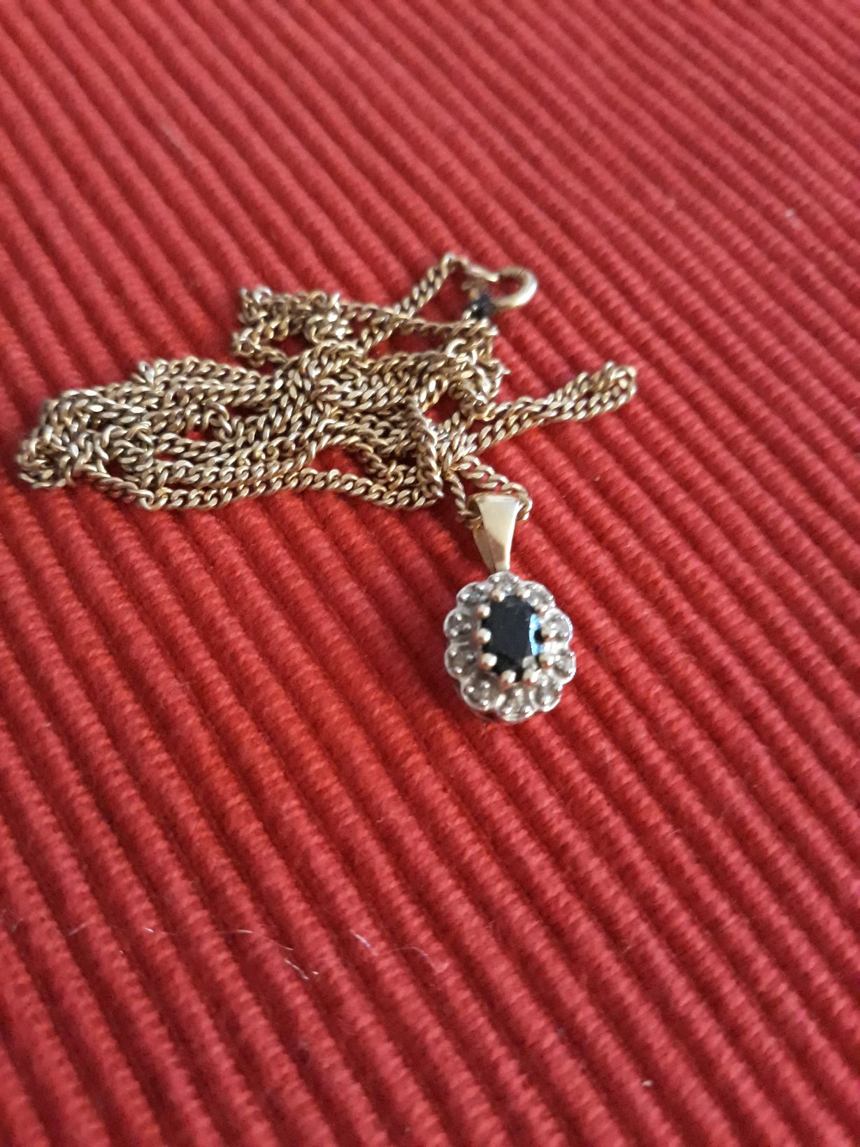Tämän kultaisen sinisafiiri-riipuksen ystäväni porukalla ostivat minulle kun odotin yksin tytärtäni... korussa on kauniita muistoja vaikeasta ajasta. Siksi ehdottomasti rakkain koruni.