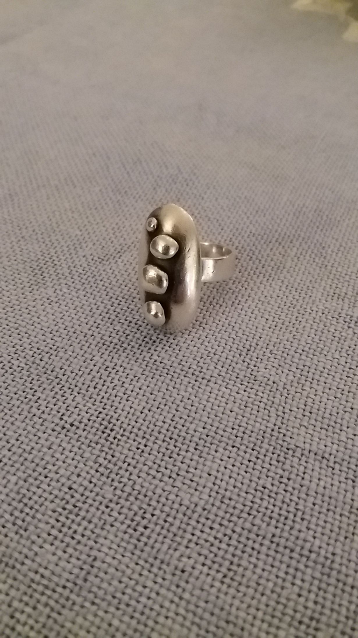 Perin äitini 60-luvun hopeisen sormuksen. Sormus on minulle rakas, koska näen siinä äidin lisäksi myös kaikki sisarukseni. Pienin pallo on vauvana kuollut siskoni.
