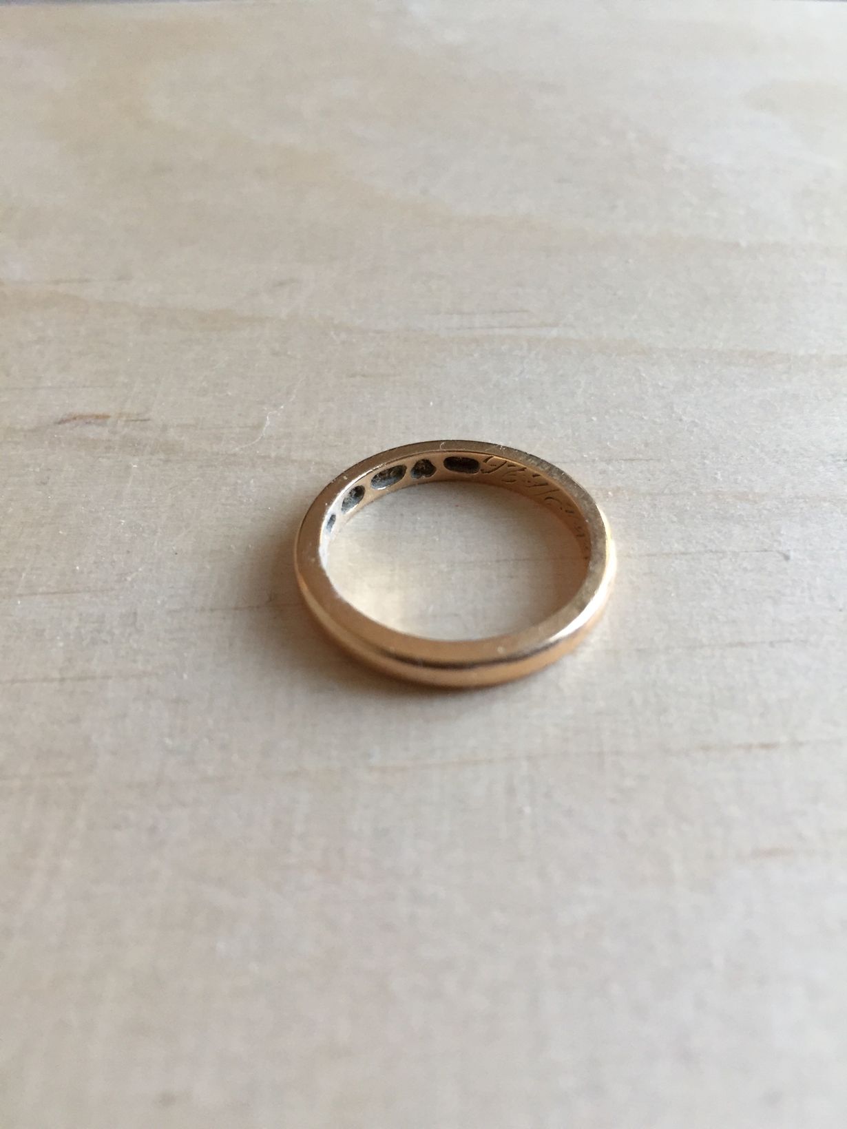 Tässä on rakkain koruni joka on isoäitini vihkisormus vuodelta 1926 ,toisen sormuksista mummuni ontoi sotakorvauskeräykseen...Ja sai rautasormuksen tilalle jokakulutti tätä kultasormusta molemmilta reunoiltaan 2x2-3 mm ,tekstin vielä tunnistaa ja vuosiluvusta saa selvää ...