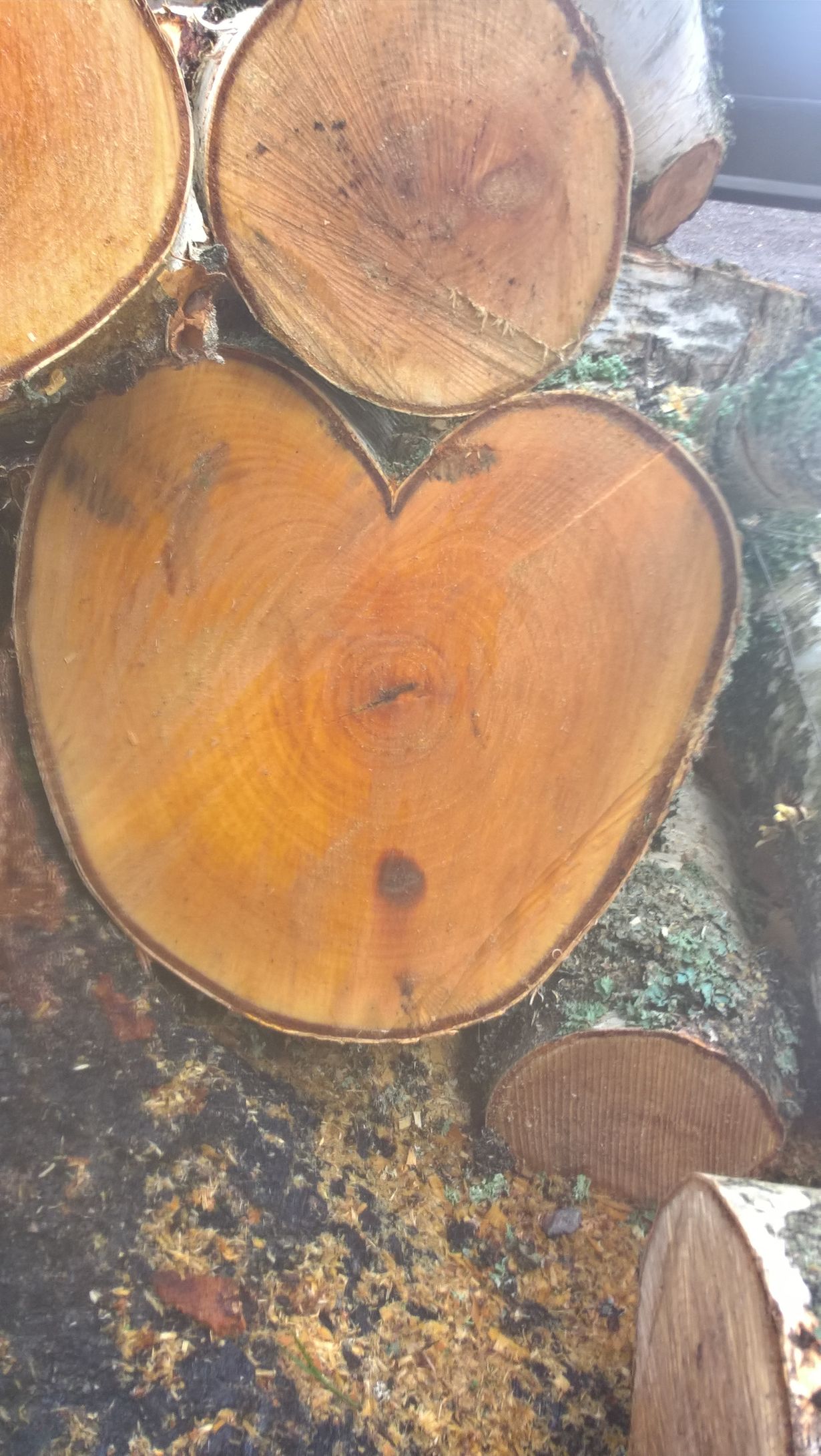 Sain mieheltäni viestin, joka oli metsätöissä mökillä, kuvan puusydämestä. Olet rakas.