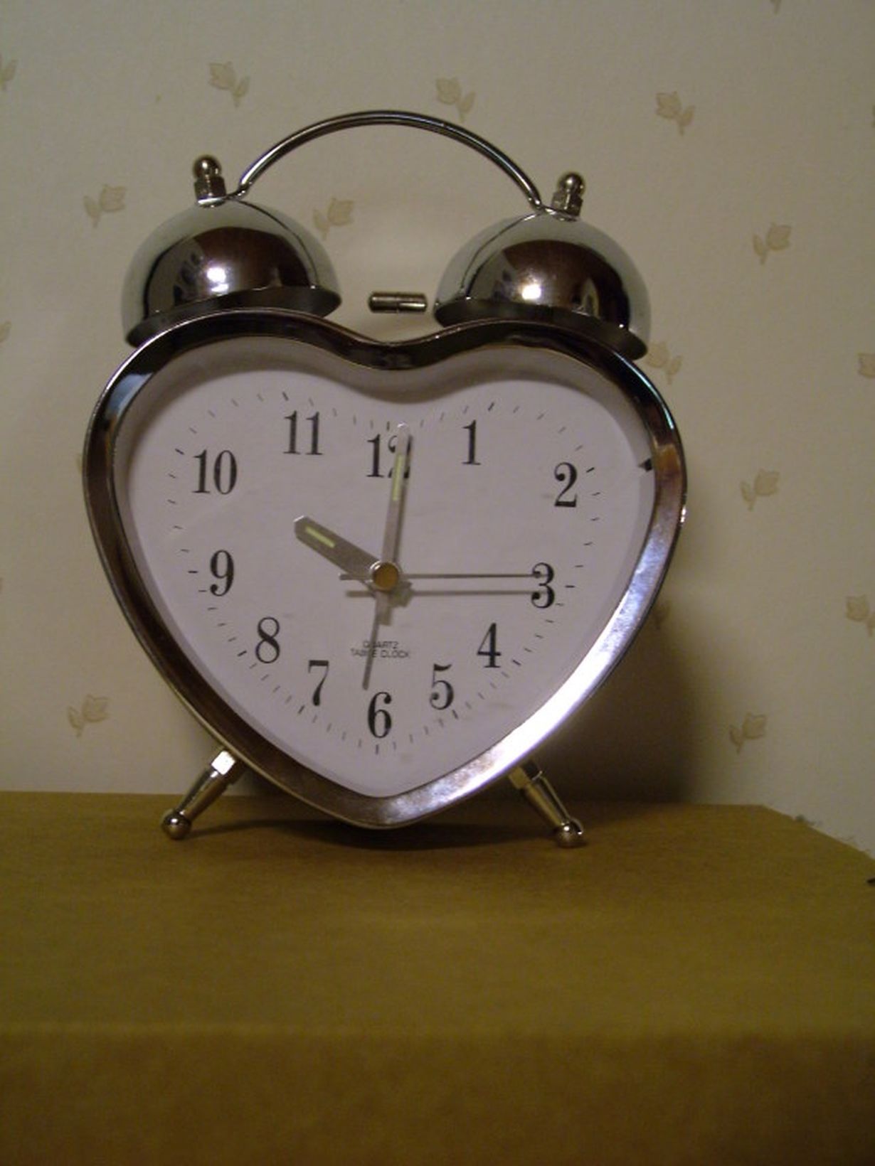 Viime syksynä rakentelin kotiseurakuntani tuomasmessun sivualttaria, jonka teema oli rakkaus. Etsin kirpparilta sydämenmuotoisia esineitä kuvaamaan rakkauden tekoja. Löysin lippaan (rakkaus tallettaa syvimmät salaisuutesi), sydänpatalapun (rakkaus ottaa kopin ja pehmentää putoamisesi) - ja tämän herätyskellon (rakkaus herättää toimimaan).