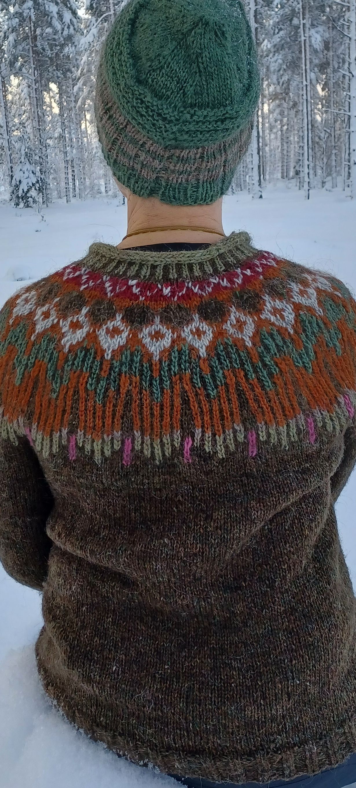 Islantilaisneuloosin nro 12: Linkan Hopi rämeen värein. Innostuksen sain KK:n jutusta vuonna -17. Tällöin näin haastateltavan päällä ihastuttavan neuleen, jonka toteutin islanninkielisestä ohjeesta.