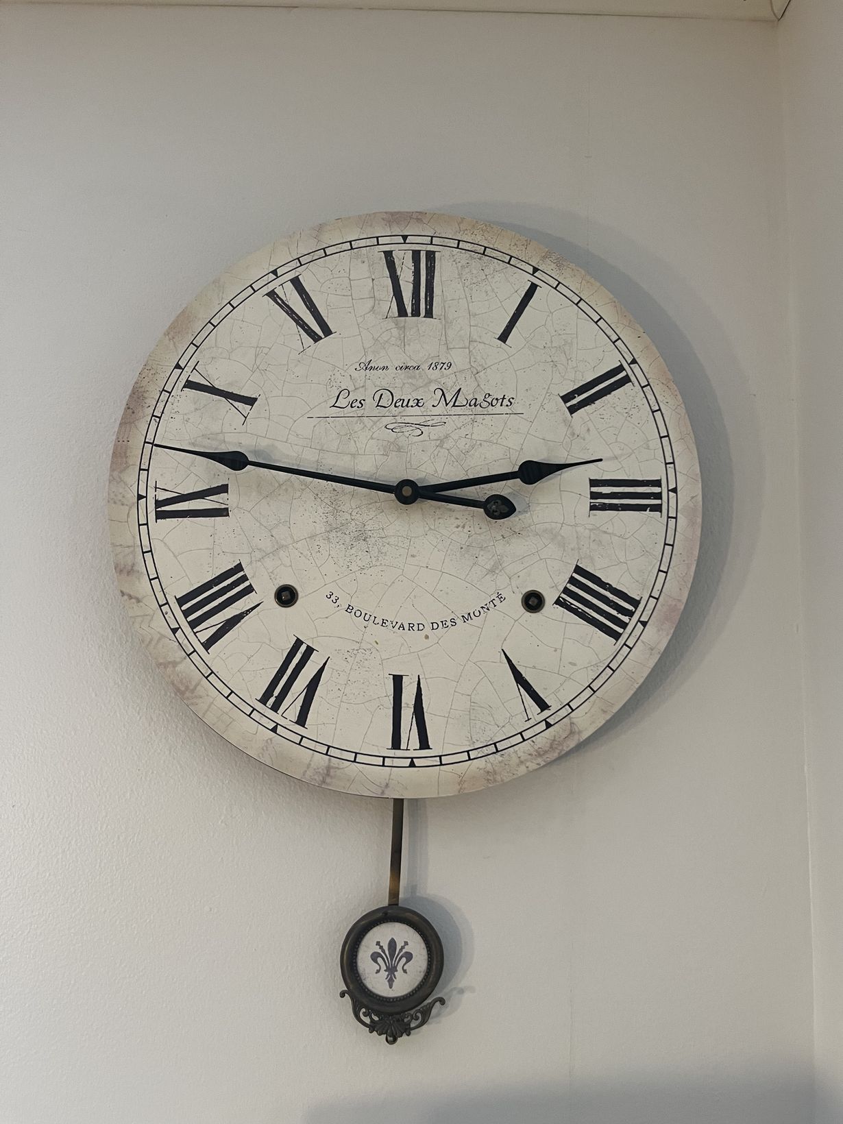 Edellinen keittiömme sisustettiin hyvin ranskalais-henkiseksi ja tämä kello istui kuin valettu meloninoranssille seinälle Ranskasta tuotujen astioiden ja koristeiden joukkoon. Kello muutti myös uuteen kotiin, ja sopii tänne myös yllättävän hyvin.