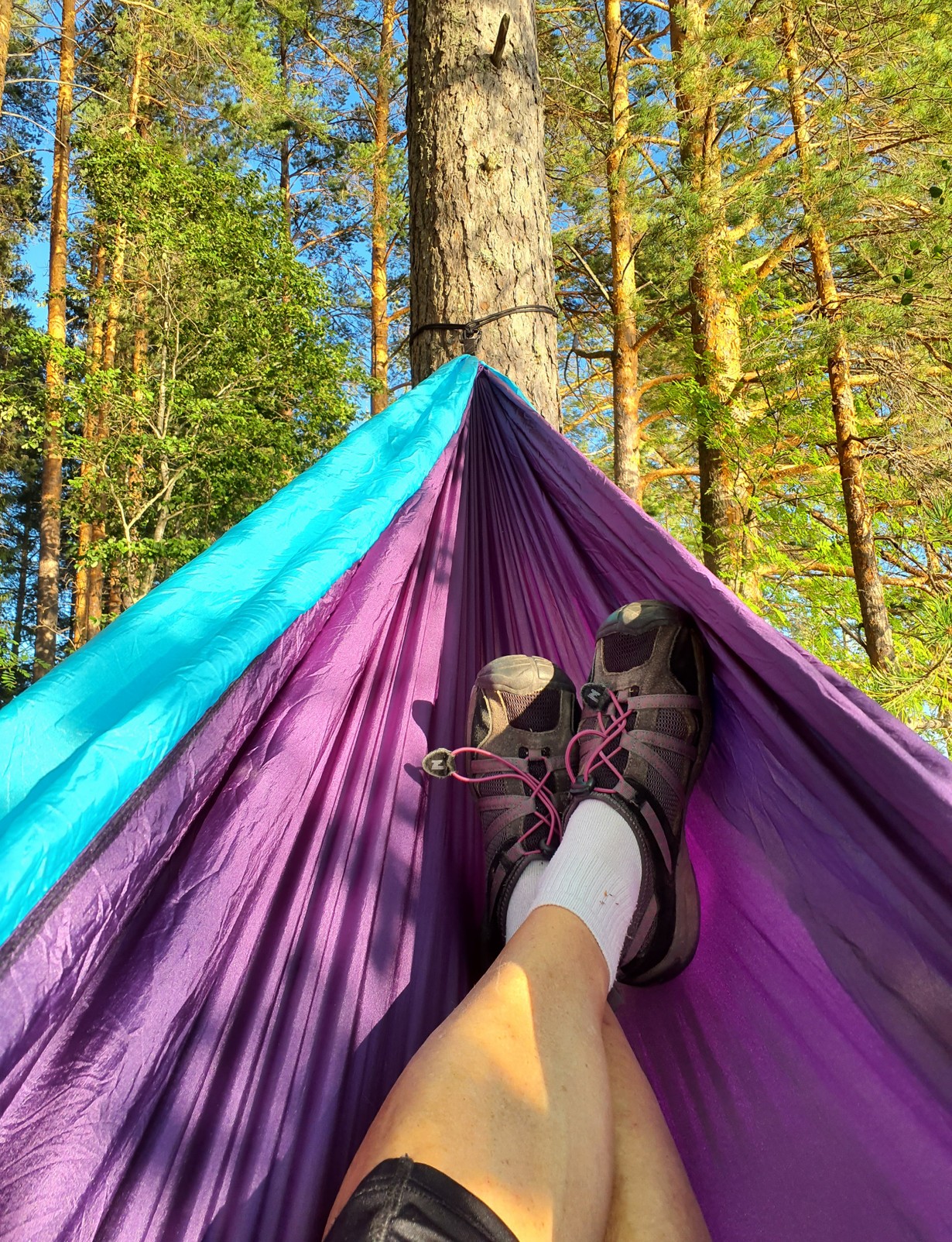 Liian harvoin tulee ripustettua mattoa saunarannan puiden väliin, vaikka matto on todella nopea kiinnittää