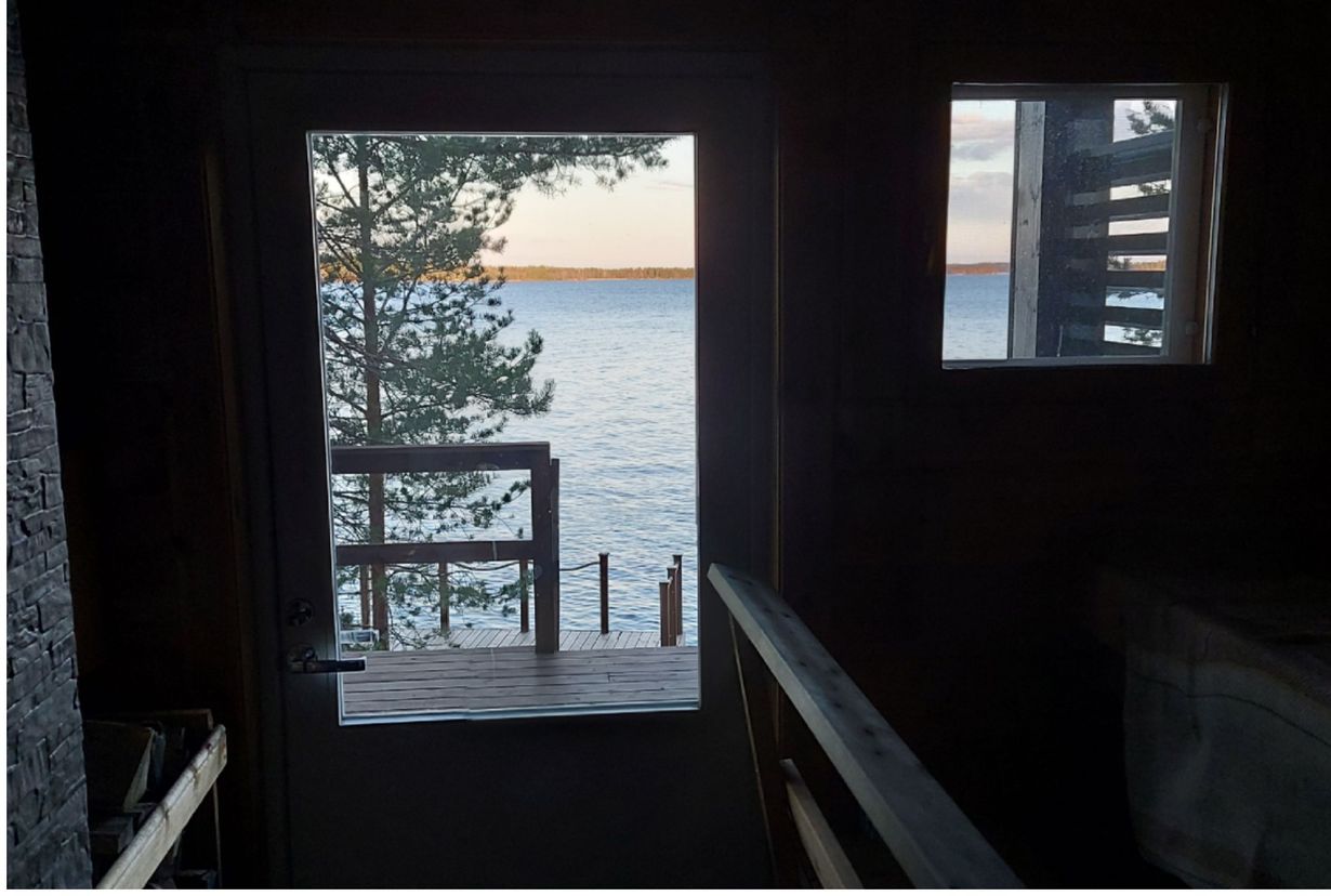 Tätä järvinäkymää ihailimme monesti mieheni kanssa alle parikymppisinä seurustelumme alkuaikoina. Istuimme kuvassa näkyvän laiturin juurella olevalla kalliolla, ja haave tuolloin oli, että voisimme joskus hankkia paikan, josta meille avautuisi vastaavanlainen näkymä. Siitä on kohta 40 vuotta! Emmepä tuolloin arvanneet, että eräänä päivänä saisimme rakentaa tämän saman näkymän äärelle oman rantasaunan. Nyt saamme nauttia sen löylyistä ja samalla ihailla tuttua maisemaa. Siihen ei kyllästy koskaan. Kalliokin, jolla tuolloin nuorena istuimme, on jätetty näkyviin.
