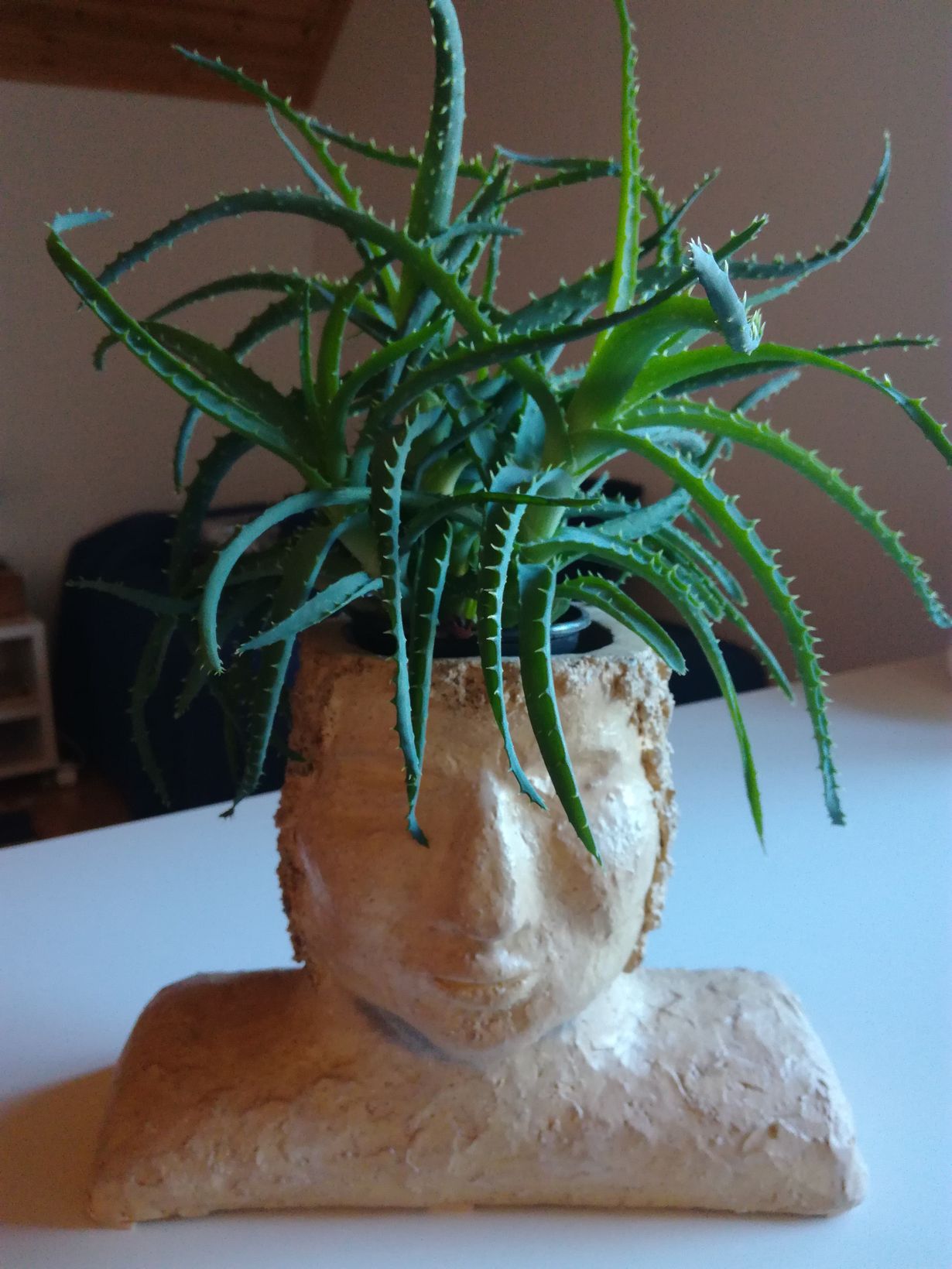 Kuvaa huonekasvisi - voit voittaa aktiivisuusrannekkeen! Rastatukka, huonekasvi Lienakaarina 20.3.2017 klo 10:05 Aloe" rastatukkana" itse tehdyssä savityössä.