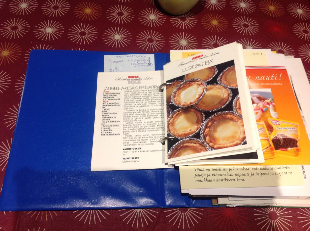 Kuvaa reseptikirjasi - voit voittaa Nanson lahjakortin! Reseptikirjani Elisa 28.12.2016 klo 17:07 Reseptini ovat säilöttynä pieneen siniseen kansioon.