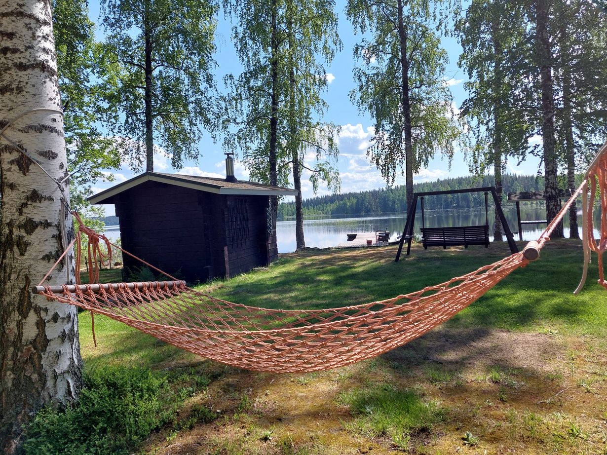 Tämän ystävämme isän solmiman riippukeinun saimme lahjaksi n. 35 vuotta sitten. Se on ollut käytössä joka kesä ja välillä tosi kovien vauhtien tyyssija.
