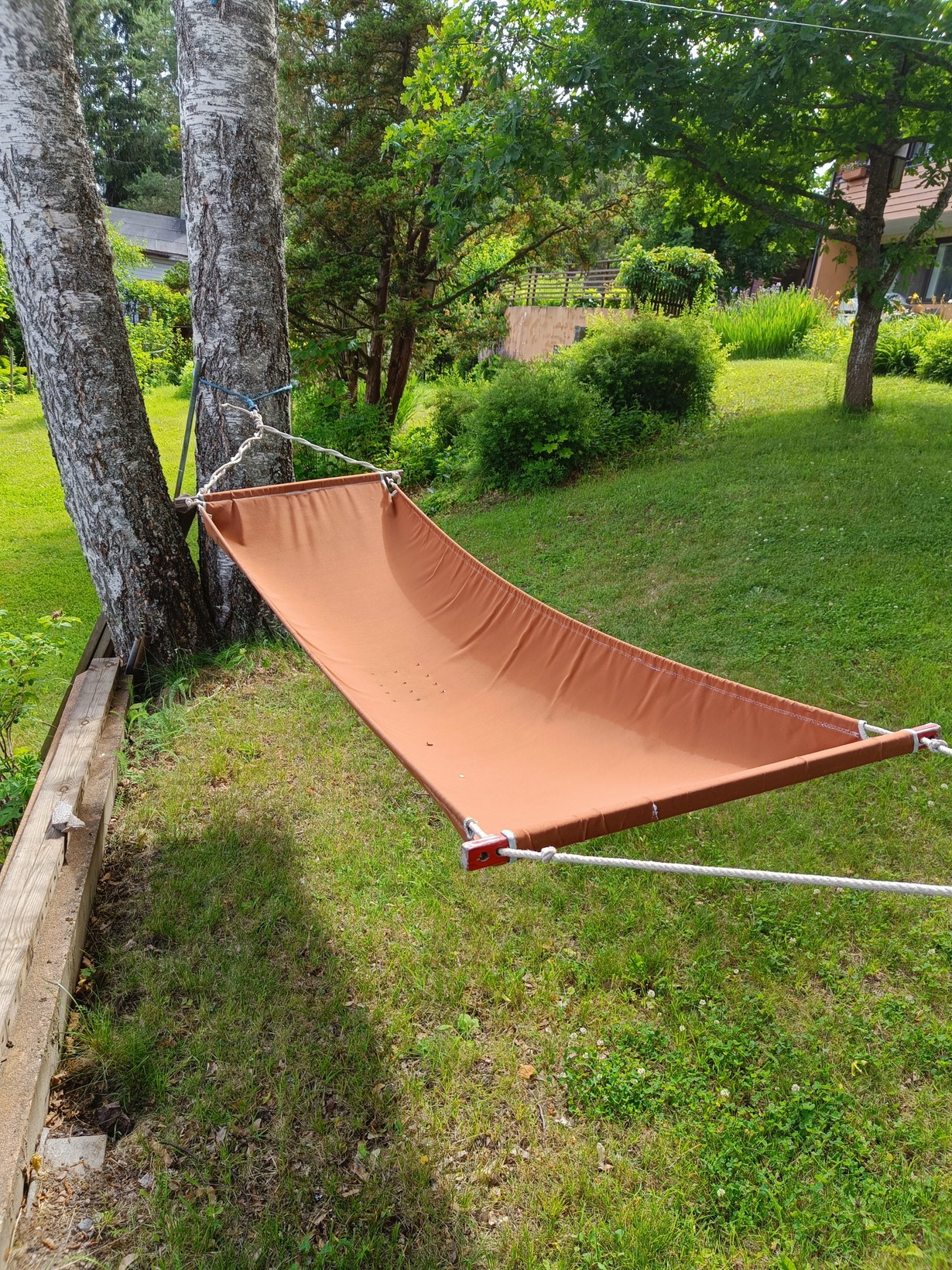 90-luvun alussa näin Ruotsin tv:ssä ohjeen. Sattui olemaan markiisikangasta kaapissa. Pohjassa sirkkarenkaat, ettei vesi seiso. Päätypuut pitänyt uusia, nyt jääkiekkomailojen varret.