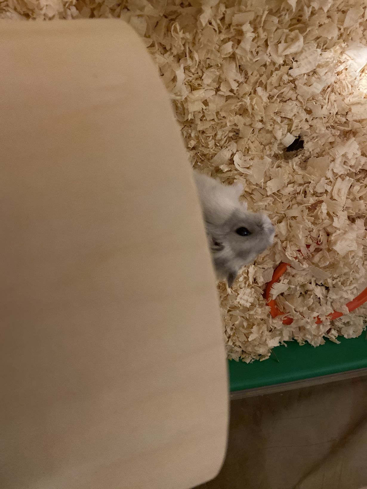 Hamsteri Risto on itsenäinen poika, joka yleensä piilottelee purujen seassa, jolloin on mahdotonta tietää, missä hän on. Nyt hän oli katseilta suojassa juoksupyörän takana.