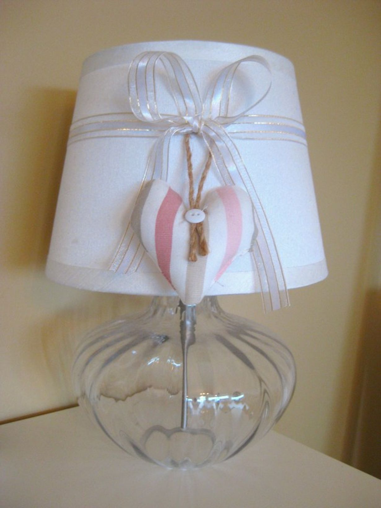Ostimme tämän pöytälampun mieheni kanssa ensimmäiseen yhteiseen kotiimme. Sisustuksen myötä myös lampun ilme muuttuu tilaan sopivaksi. Nyt sitä koristaa itse tehty rusetti sekä pehmosydän, lamppu on hempeän romanttinen ja meidän näköinen.